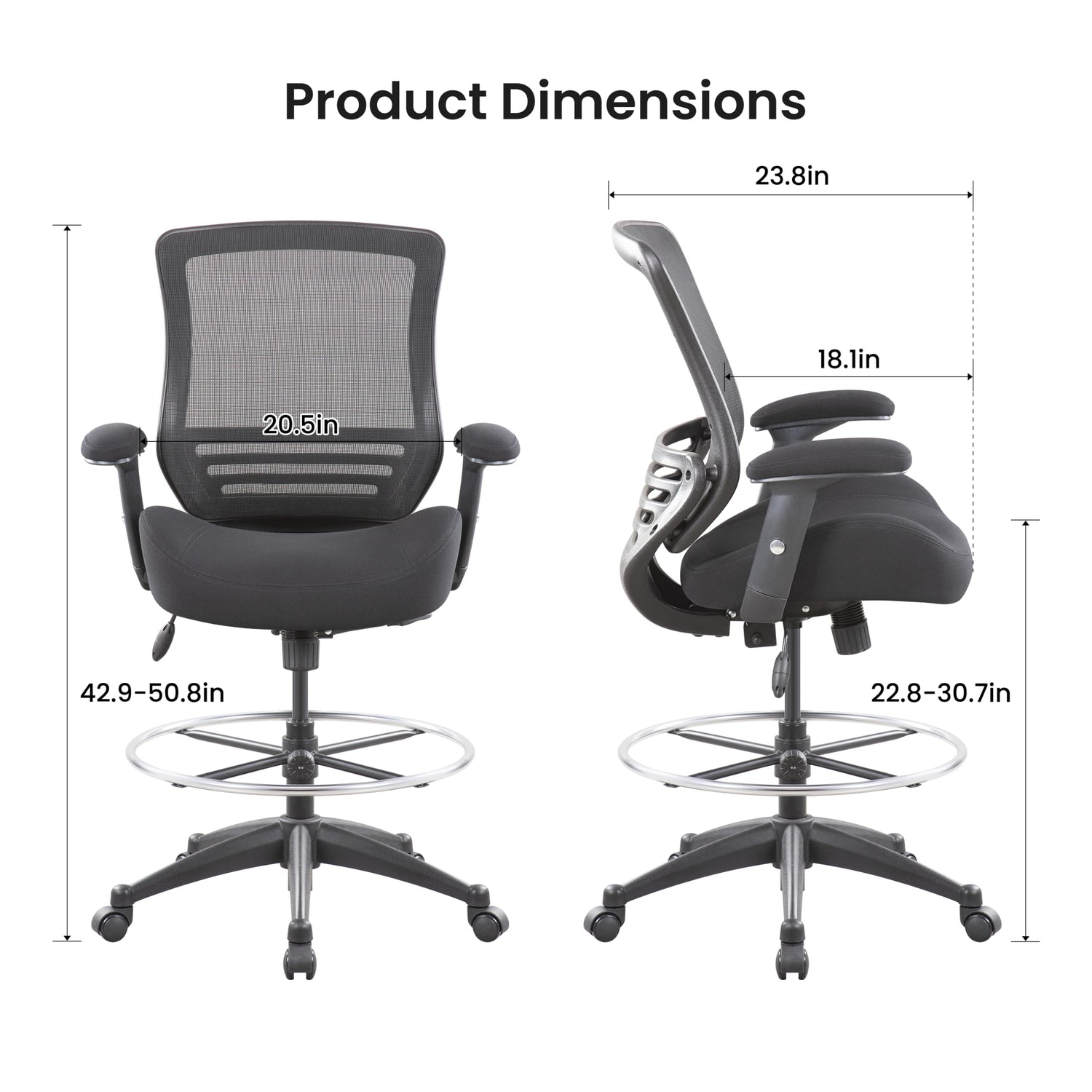 • Function:You can put your feet on the 24.016 inch bigger foot ring when you seat on the chair.Oversize feet ring is bigger than the seat,it will be easy to put your foot on the foot ring.Using our drafting chair does not cause bending of the feet or stress on the legs.When you work in a chair for a long time ,your legs will be very comfortable and there will be no pressure on your feet.