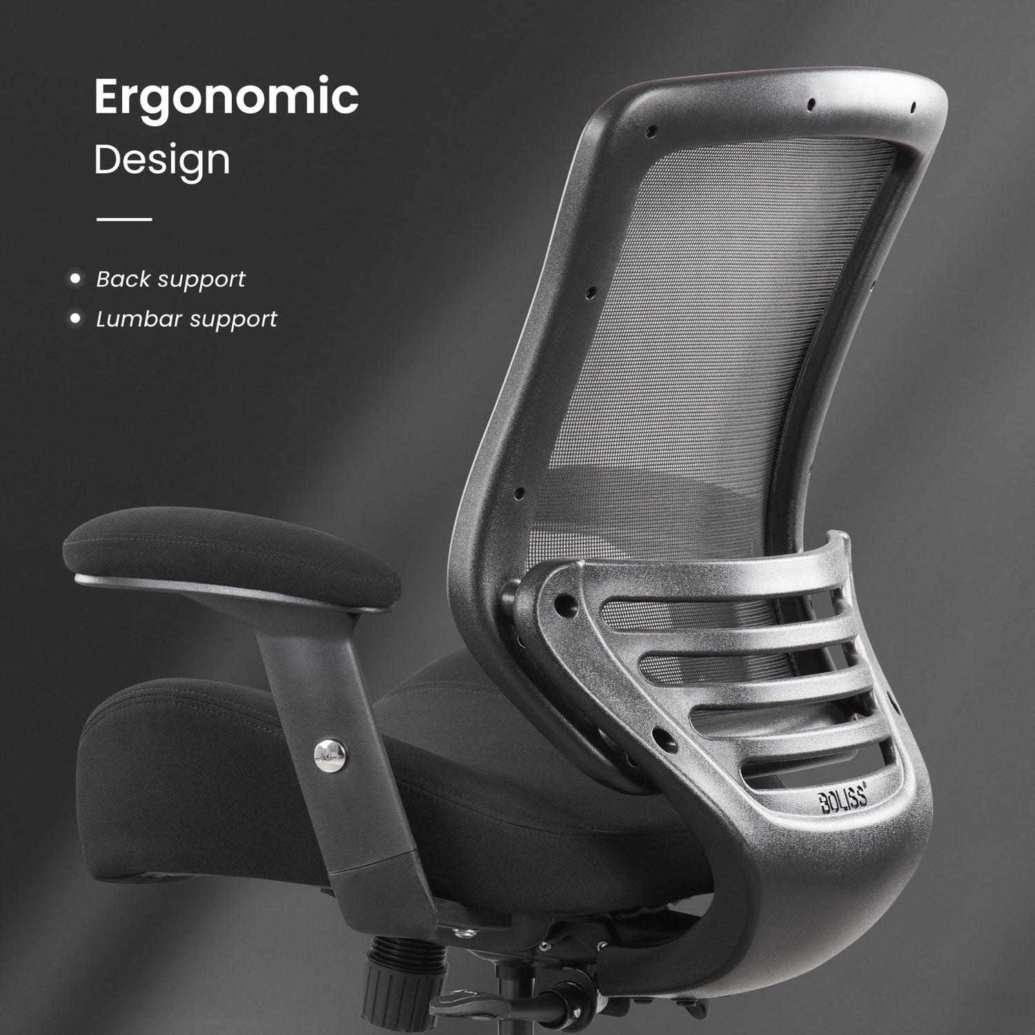 BOLISS Ergonomic Mesh Computer Office Drafting Chair with Super Soft Adjustable Arms Molded Foam Seat Cushion and Lumbar Support-Black