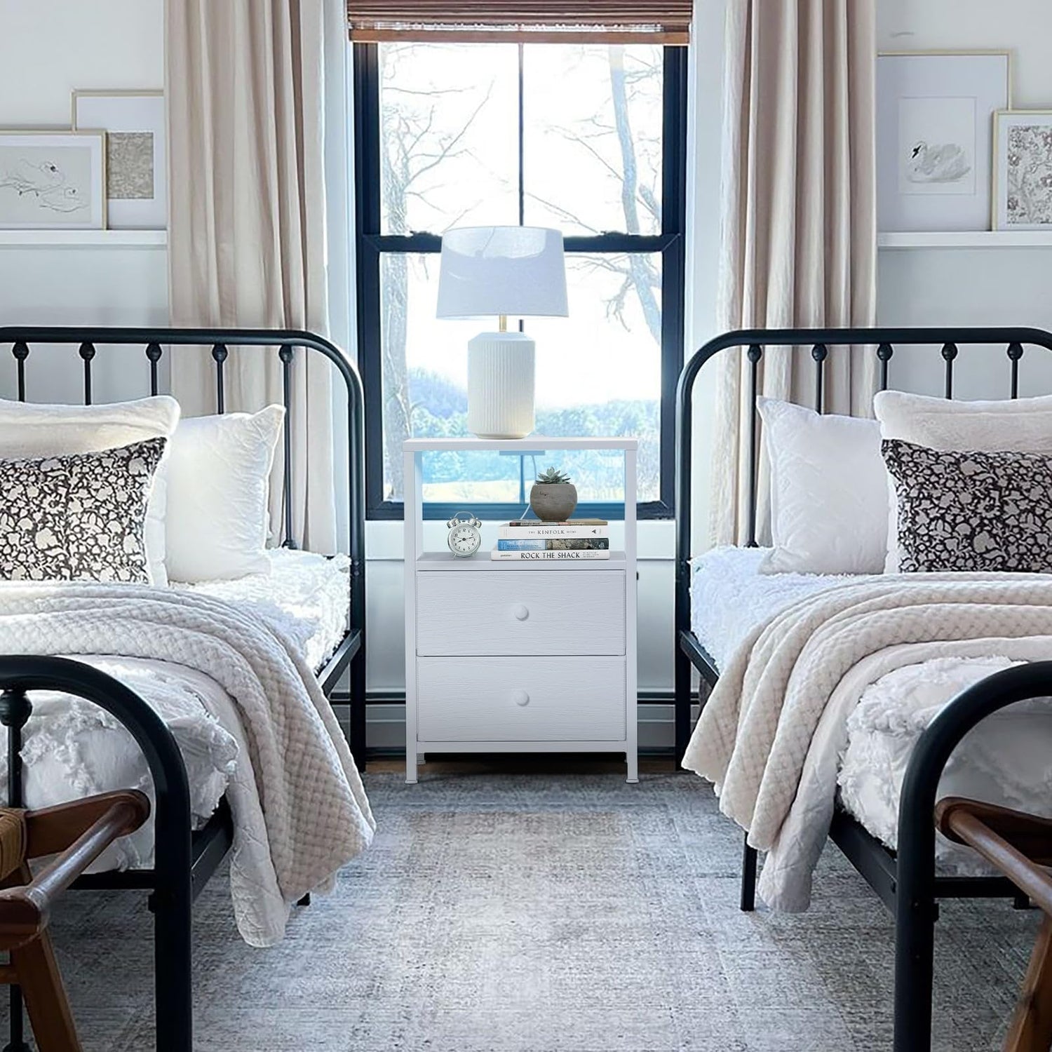 - Fabric Drawer with Leather Front: This white night stand has FABRIC drawers with wood grain front,elegant look and easy to clean,removable wooden handle