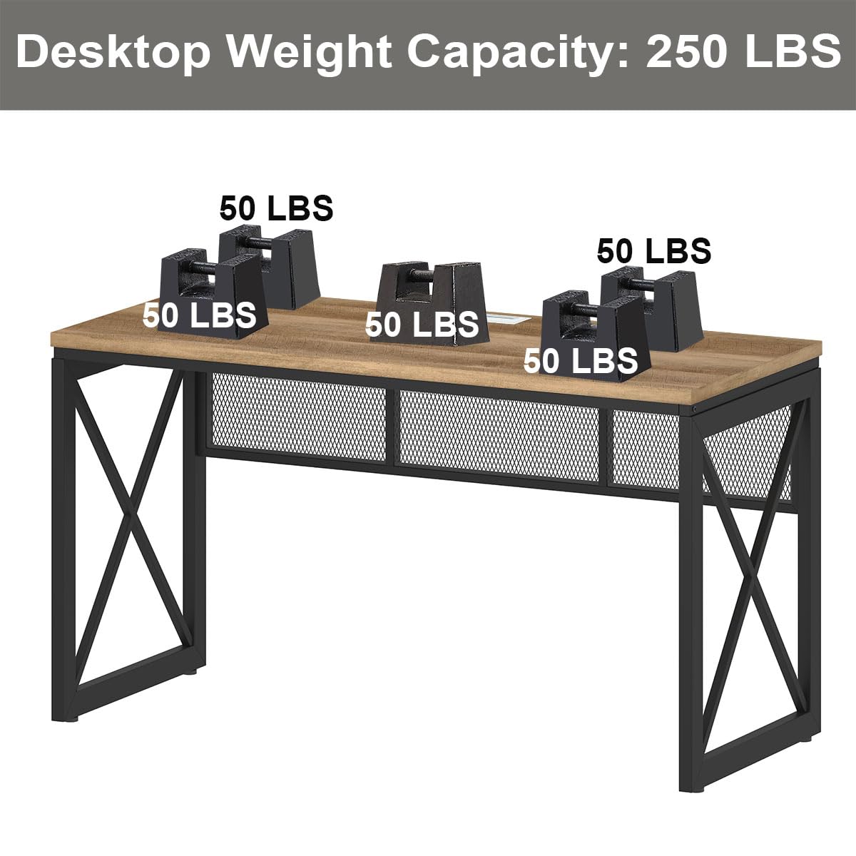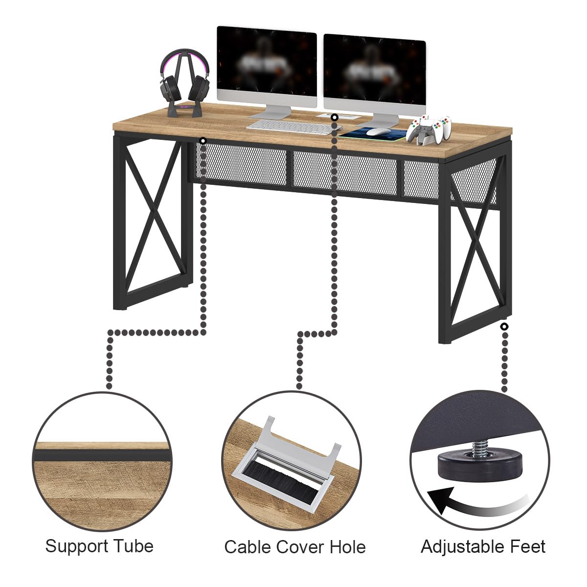- Not Wobbles at All: Heavy duty metal x-shaped legs and support mesh frame on the back, add an extra support tube under thick desktop makes this industrial computer desk super strong and sturdy. Besides 4 pcs adjustable feet will strengthen the stability and keep balance. Weight Capacity of desktop is 250 LBS.
