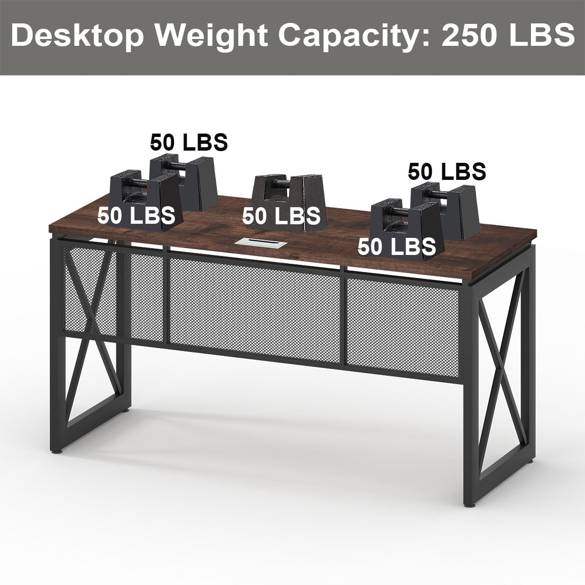 - Not Wobbles at All: Heavy duty metal x-shaped legs and support mesh frame on the back, add an extra support tube under thick desktop makes this industrial computer desk super strong and sturdy. Besides 4 pcs adjustable feet will strengthen the stability and keep balance. Weight Capacity of desktop is 250 LBS.