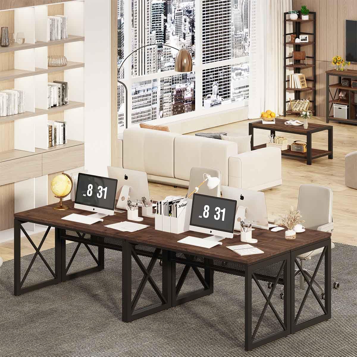 - Home Office Desk: Large wood desktop will provide you a spacious room to work on. Ideal for monitors, laptops and leave enough room for books and other working accessories. Keep clutter out of sight while lending a touch of industrial-chic charm to your office.