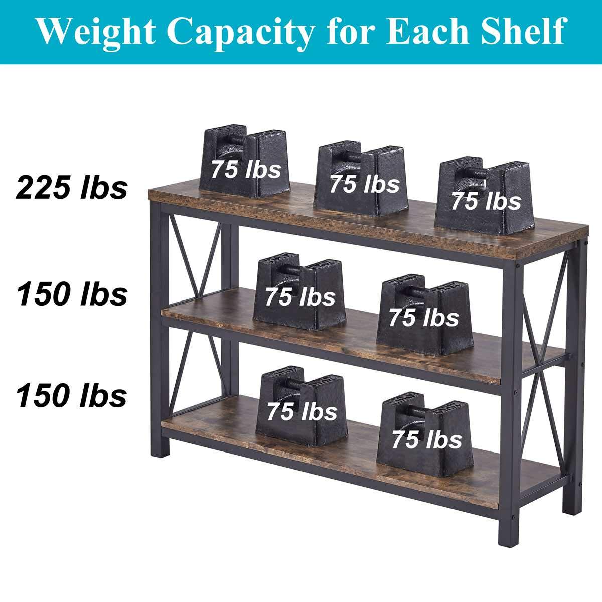 Details: BON AUGURE ConceptWe have a professional design team, to capture the most popular furniture styles, and actively develop new products. The launch of each product has been carefully considered and tested. From the manufactory direct to you, we abandon layer upon layer distribution, only want to provide you the maximum benefit - the most affordable price with the excellent product quality and the most comprehensive service. Lend your space a touch of industrial appeal with this multipurpose console table.Striking rectangular silhouette, its clean-lined frame is crafted of black metal, while three MDF boards with Rustic oak look construct from bottom to top. High quality durable material make it perfect for displaying framed photos, potted plants, or a chic table lamp, and the matching lower shelves are a great spot to store your DVD collections or set a row of your favorite novels. Specifications: −Dimension: 13.39”D x 47.24”W x 30.12”H−Weight Capacity: The top shelf can hold 300 lbs and the lower shelves can hold 150lbs.−Height between Shelves: 10.08-inch without the thickness of the shelf.−Color: Rustic oak−Package: 1* 3 tier console table, 1* instructions kit−Easy Assembly: Simple design makes assembly an easy job. Wipe it clean with a dry cloth for an extended life.After-Sale ServiceWe support 24 hours friendly customer service. Any questions about our products, please let us know.