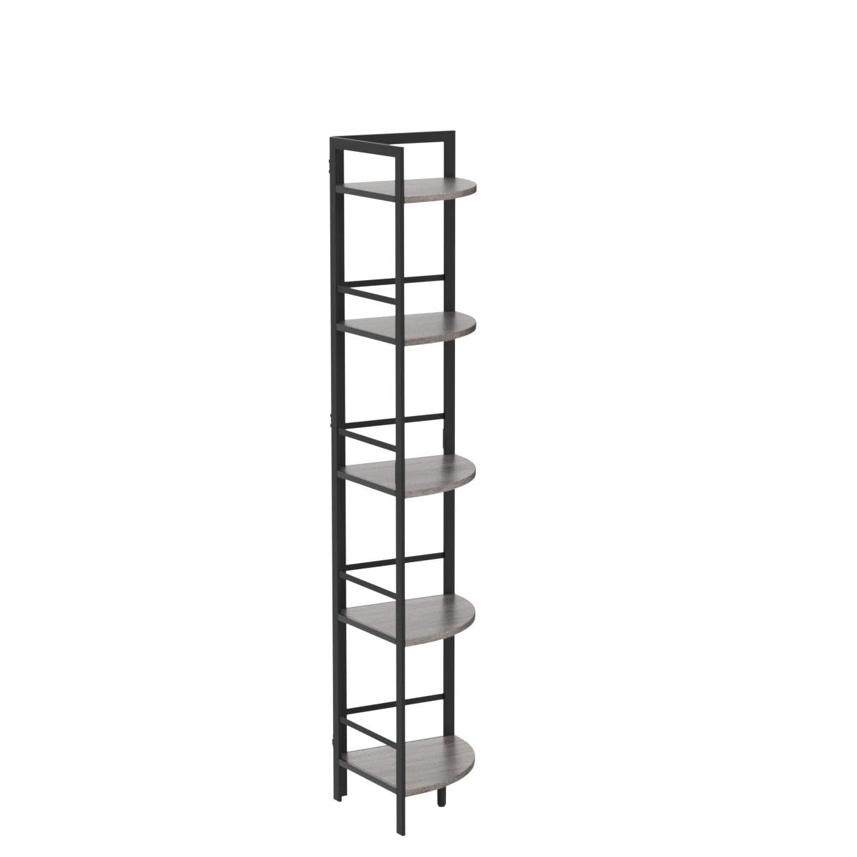 BON AUGURE Industrial Chic 5-Tier Dark Grey Oak Corner Bookshelf