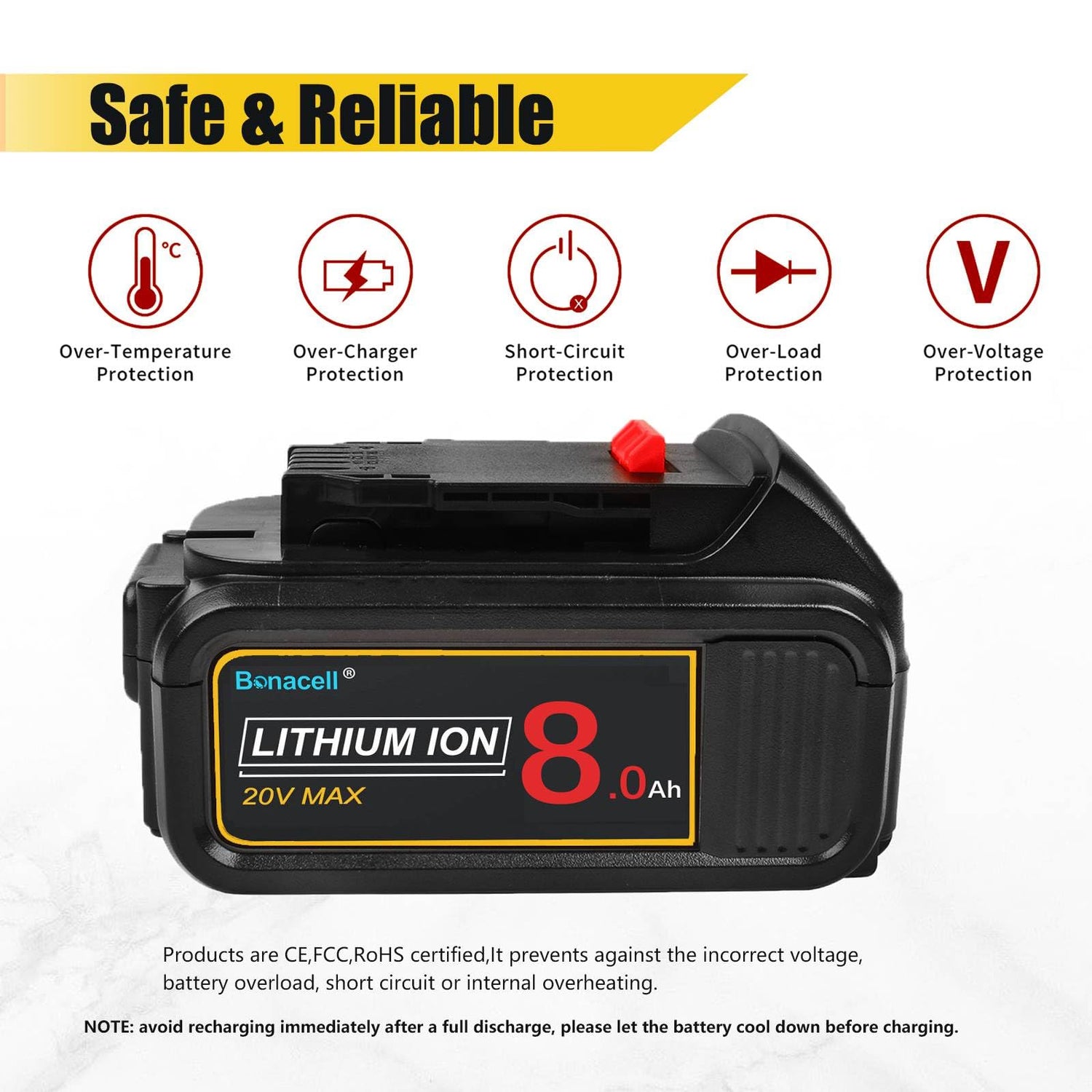 Bonacell 2Pack 8000mAh Lithium Replacement for Dewalt 20V MAX Battery DCB206 DCB204 DCB200 DCB180 DCB181 DCD/DCF/DCG Series