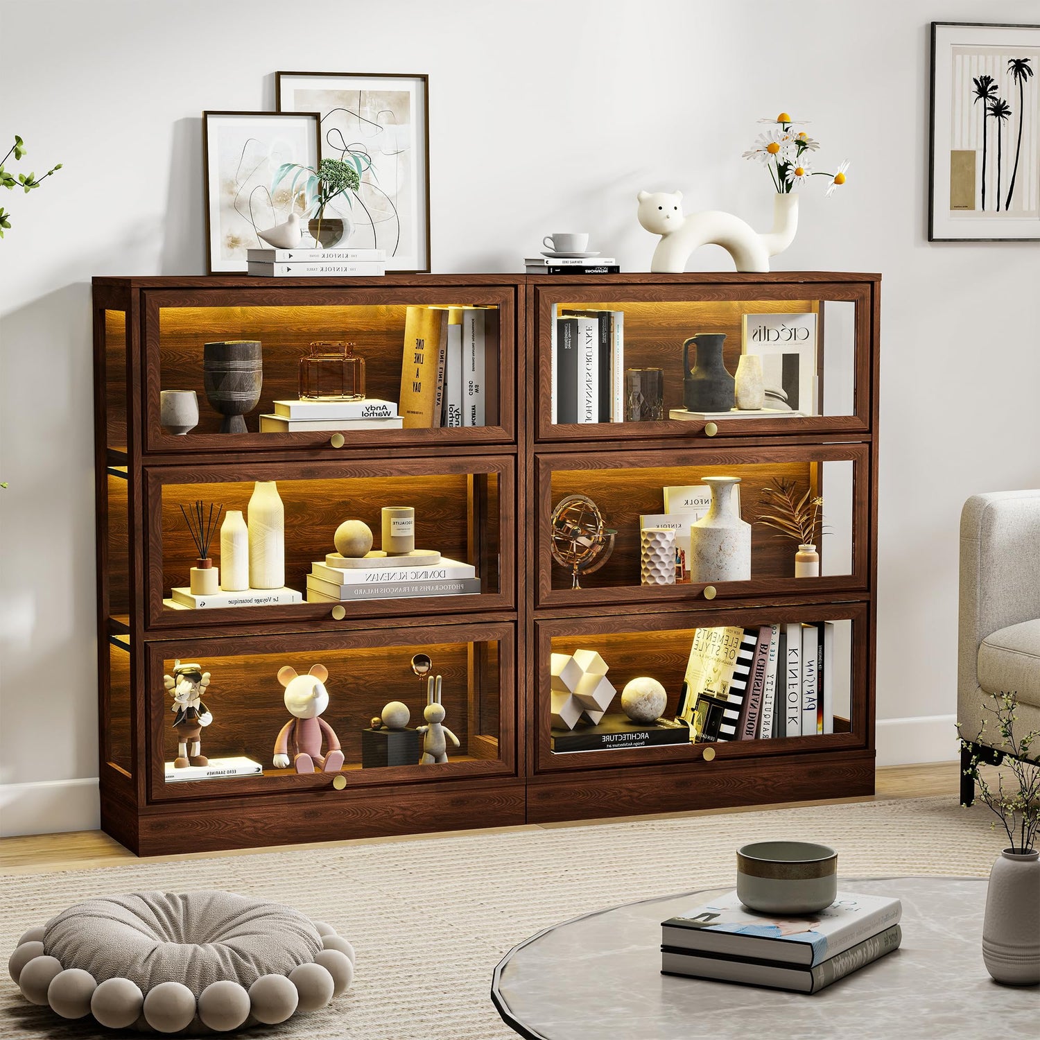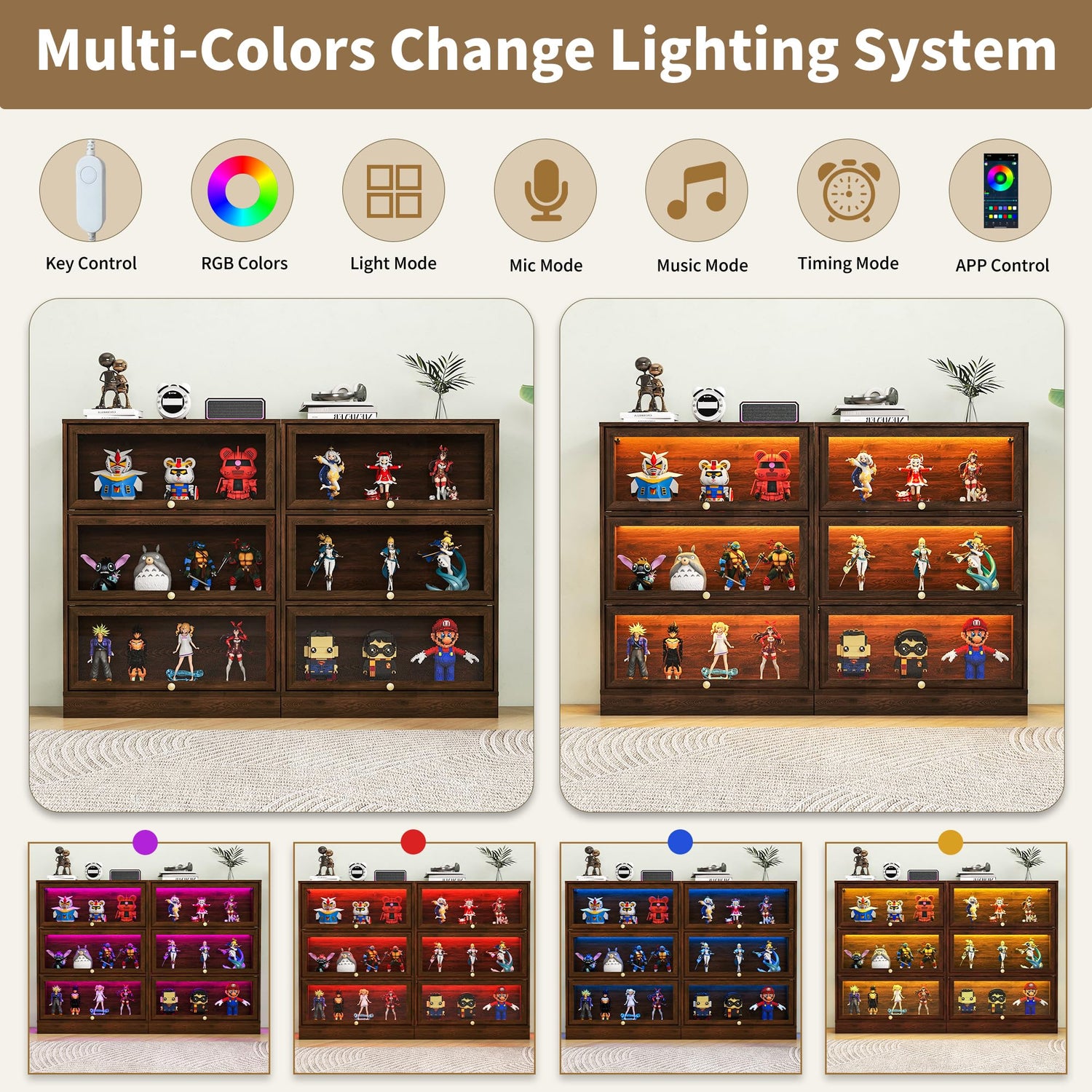 Boniture Display Cabinet with Acrylic Glass Doors,3-Tiers Curio Cabinet with LED Lighting for Collectibles, Collectibles Toy Organizers Rack & Display Shelf Display Case Storage Cabinet,Walnut