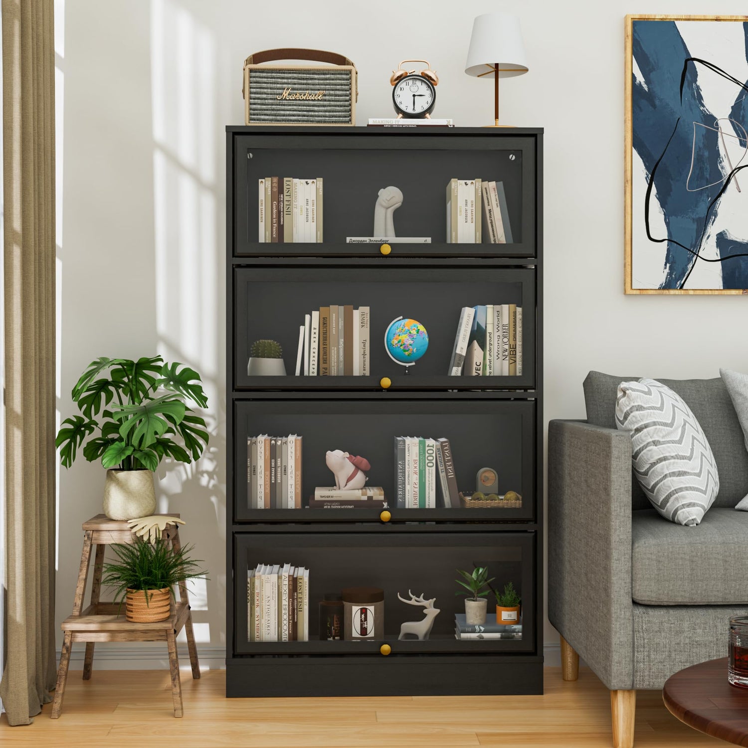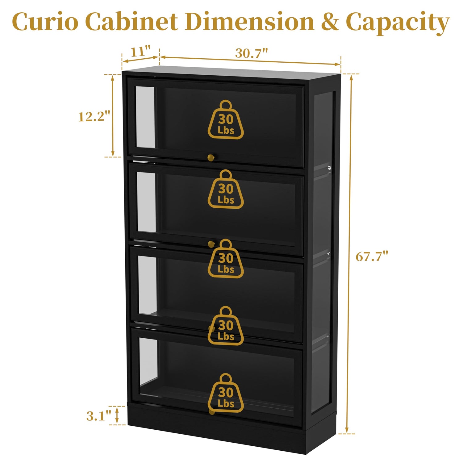 - Spacious Storage for Versatile Use:Measuring 31" W x 55" H x 11" D, this display cabinet provides ample space across four sturdy tiers to store and showcase gaming consoles, action figures, trophies, wine collections, books, and more—perfect for any home, office, or entertainment space.