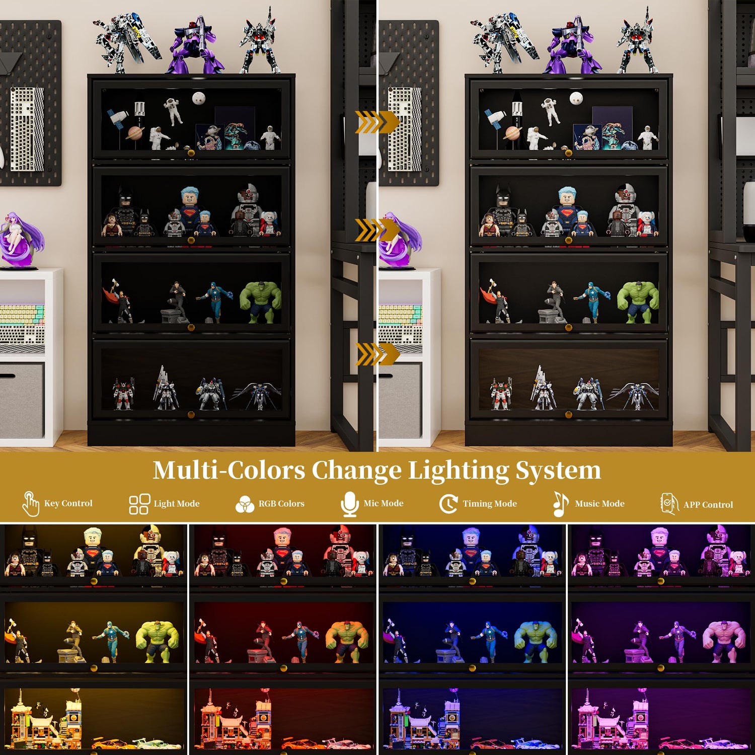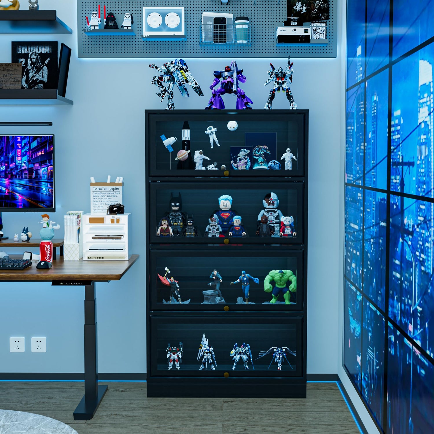 - Multi-Functional & Space-Smart:Perfect for living rooms, gaming dens, dining areas, or offices. Use it as a geeky collectible showcase, luxury wine cabinet, stylish bookcase, or decorative storage for plants, art, and more.