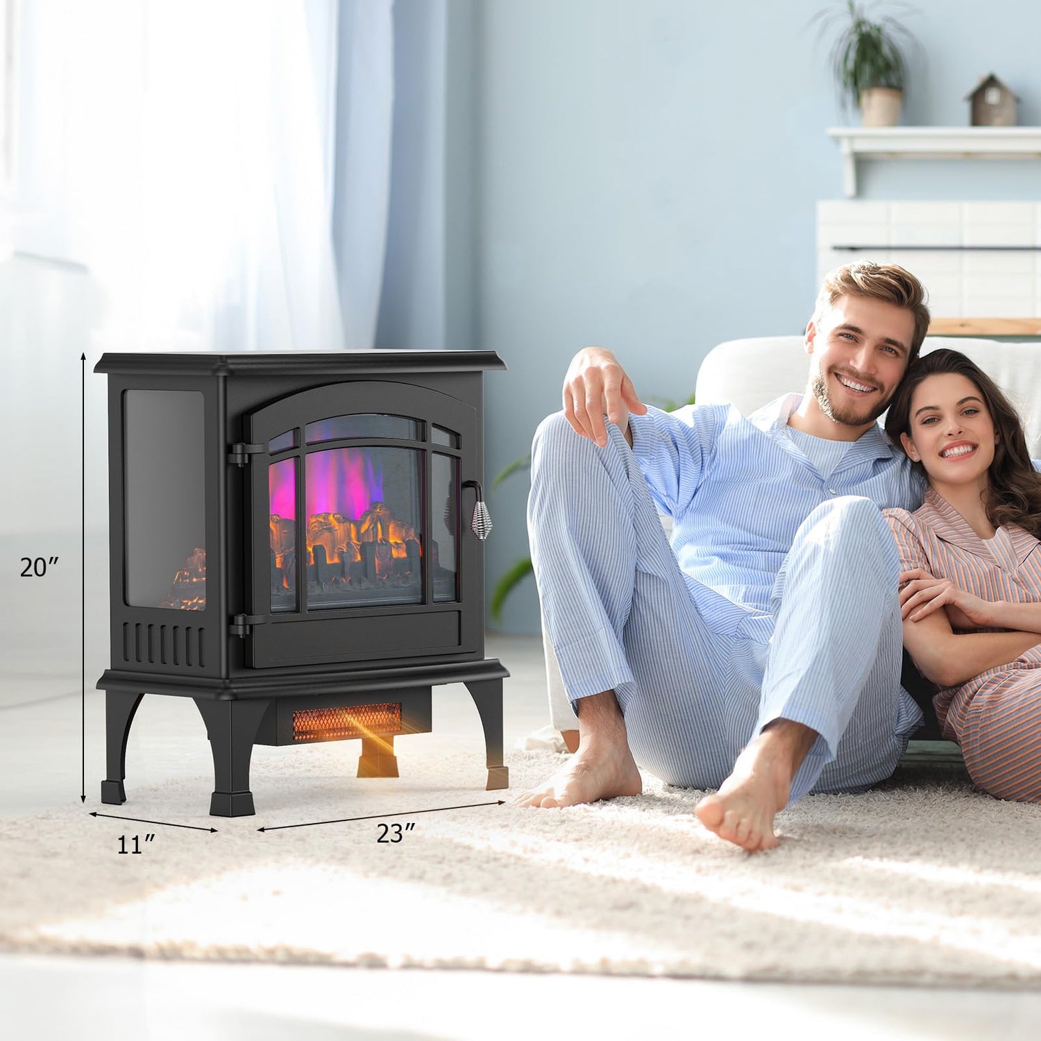 Bonnlo 23" W Electric Fireplace Stove, 1500W Portable Freestanding Fireplace Heater w/Remote, Timer, 3D Flame, Overheat & Tip-Over Protections, Suit for Bedroom, Living Room, CSA Approved
