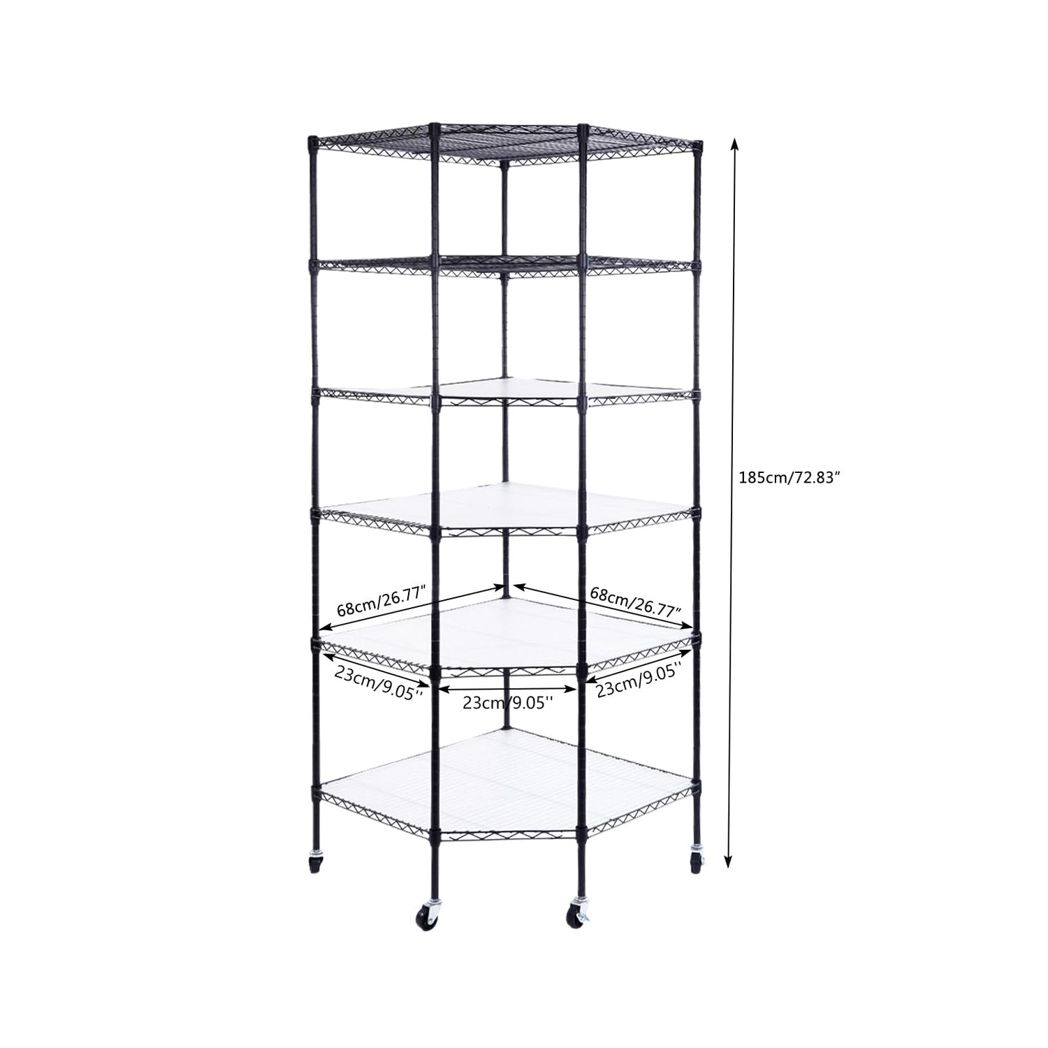 - MULTI FUNCTIONA: Our 6-tier Shelving unit perfectly fits in corner, is extremely useful in organizing stuff ,especially great for any place where has limited room while requires large storage space,such as bathroom, doorway, entryway, garage, kitchen, pantry, laundry, office or closet.
