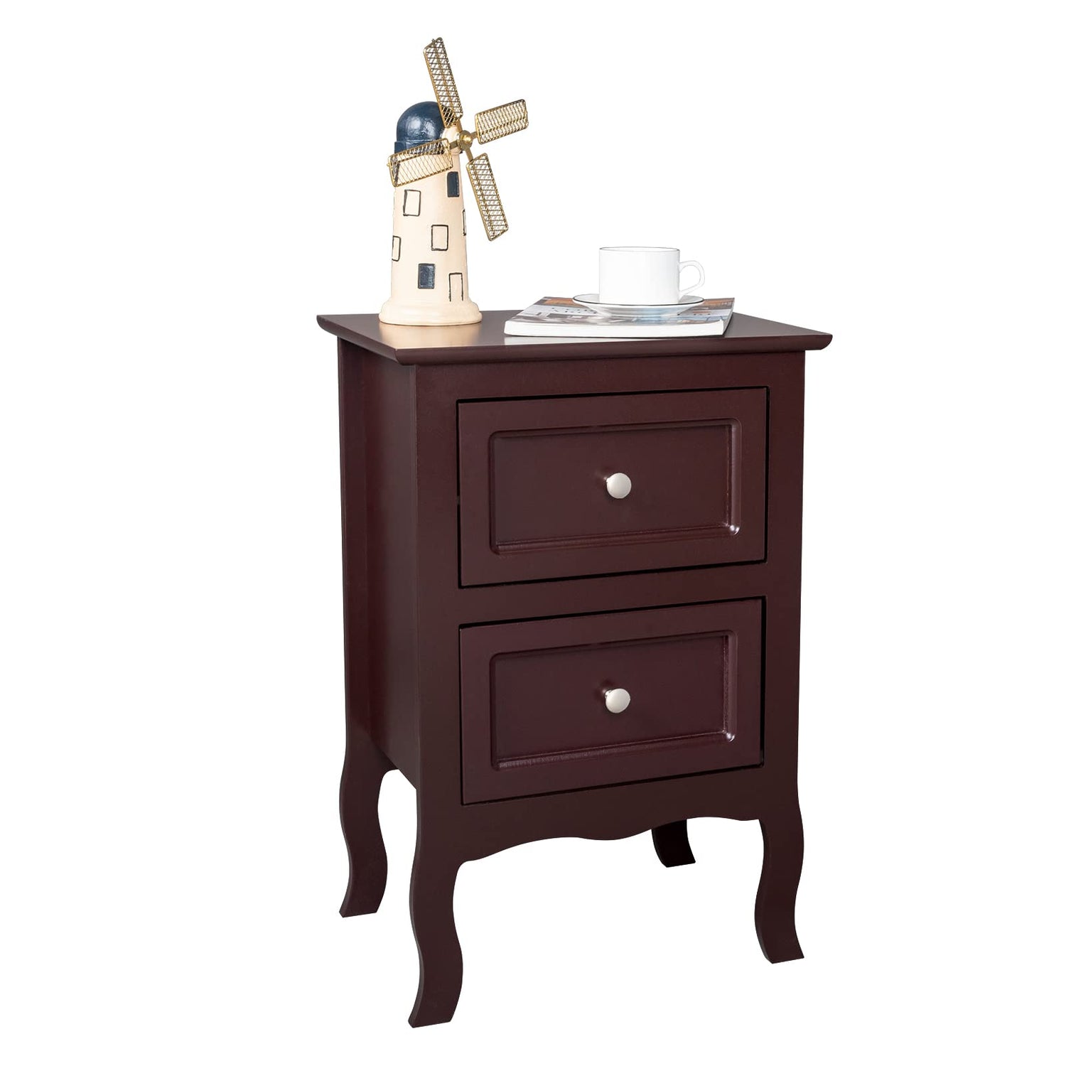 Bonnlo Brown Nightstand Set of 2, Nightstands with 2 Drawers, Bed Side Table/Night Stand, Small Nightstand for Bedroom, Small Spaces, College Dorm, Kids’ Room, Living Room, Wood, 16W x 12D x 24H