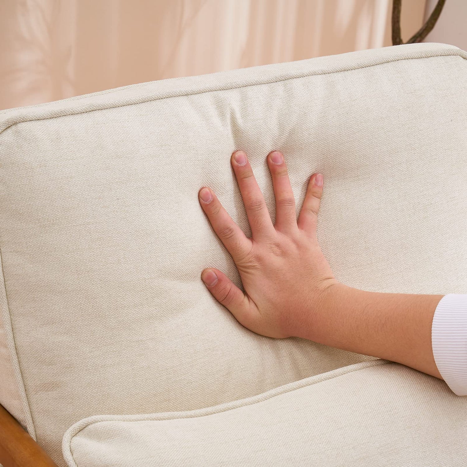 - 【Ideal Guest Seating】Its thick padded cushion, soft upholster, solid wooden structure make it an ideal extra seating for guests in a wide range of age, varying from teens to the elder. The slightly back reclining design of its wooden arms are human egonomic for resting as well.