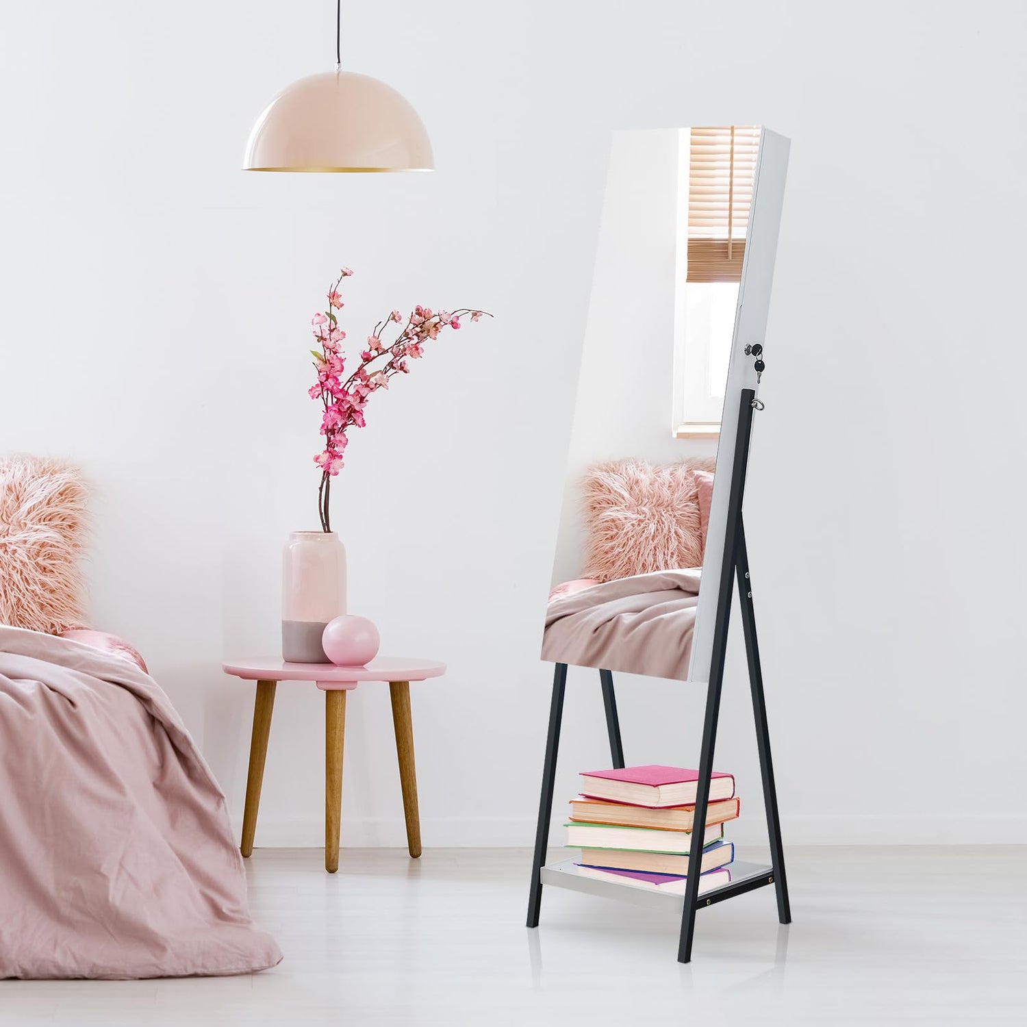 - ❤ Space-Saving Design - Stand Dimension: 18.5"L x 16.5"W x 65"H; Weight: 28 lbs. This jewelry mirror cabinet will not take up much space and suitable for any place in the home
