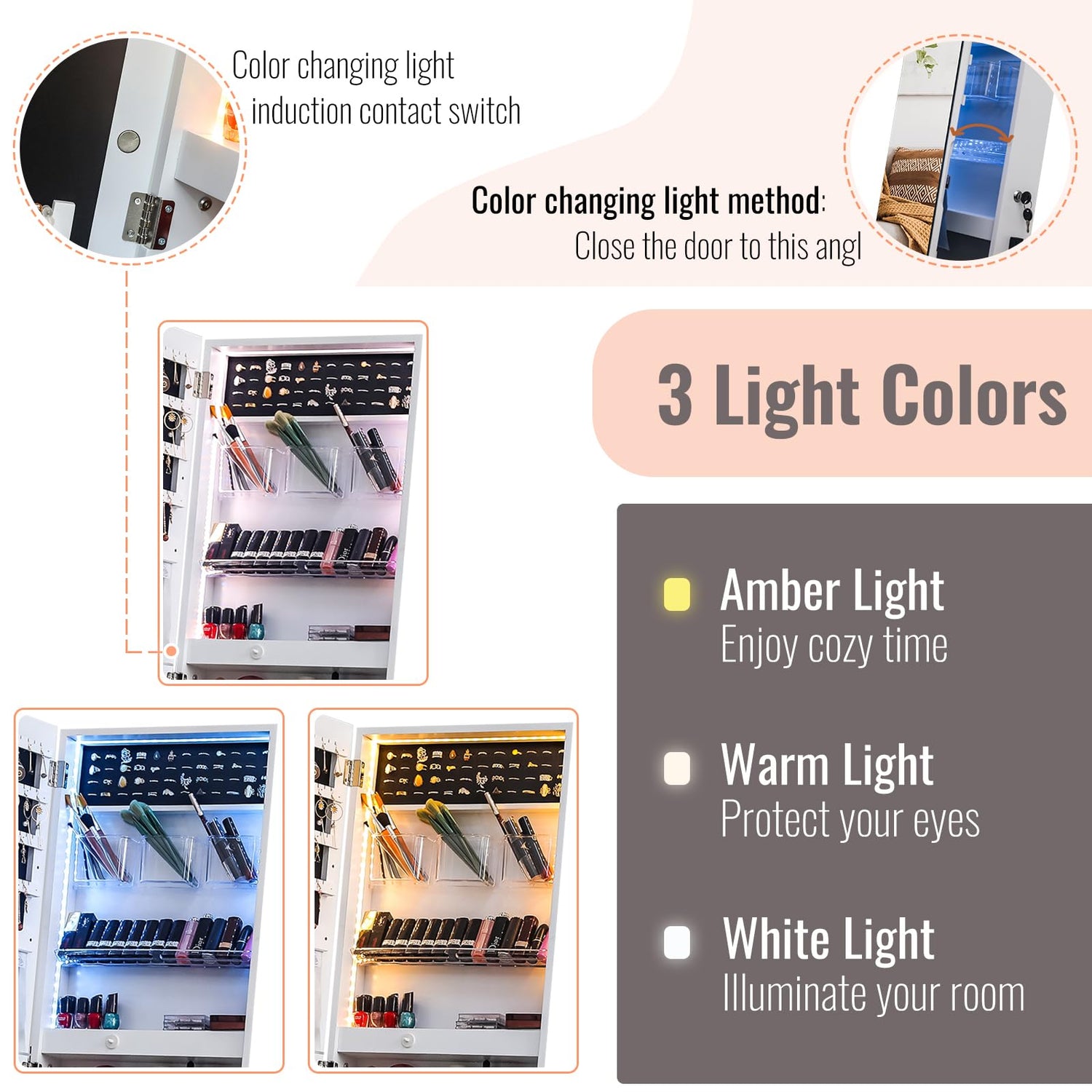- ❤ Lockable Design - Arriving with a lock and 2 keys, no one can open the jewelry cabinet but you who hold the keys, keep your belongings out of reach of someone else. All your precious jewelry and privacy will be well-protected