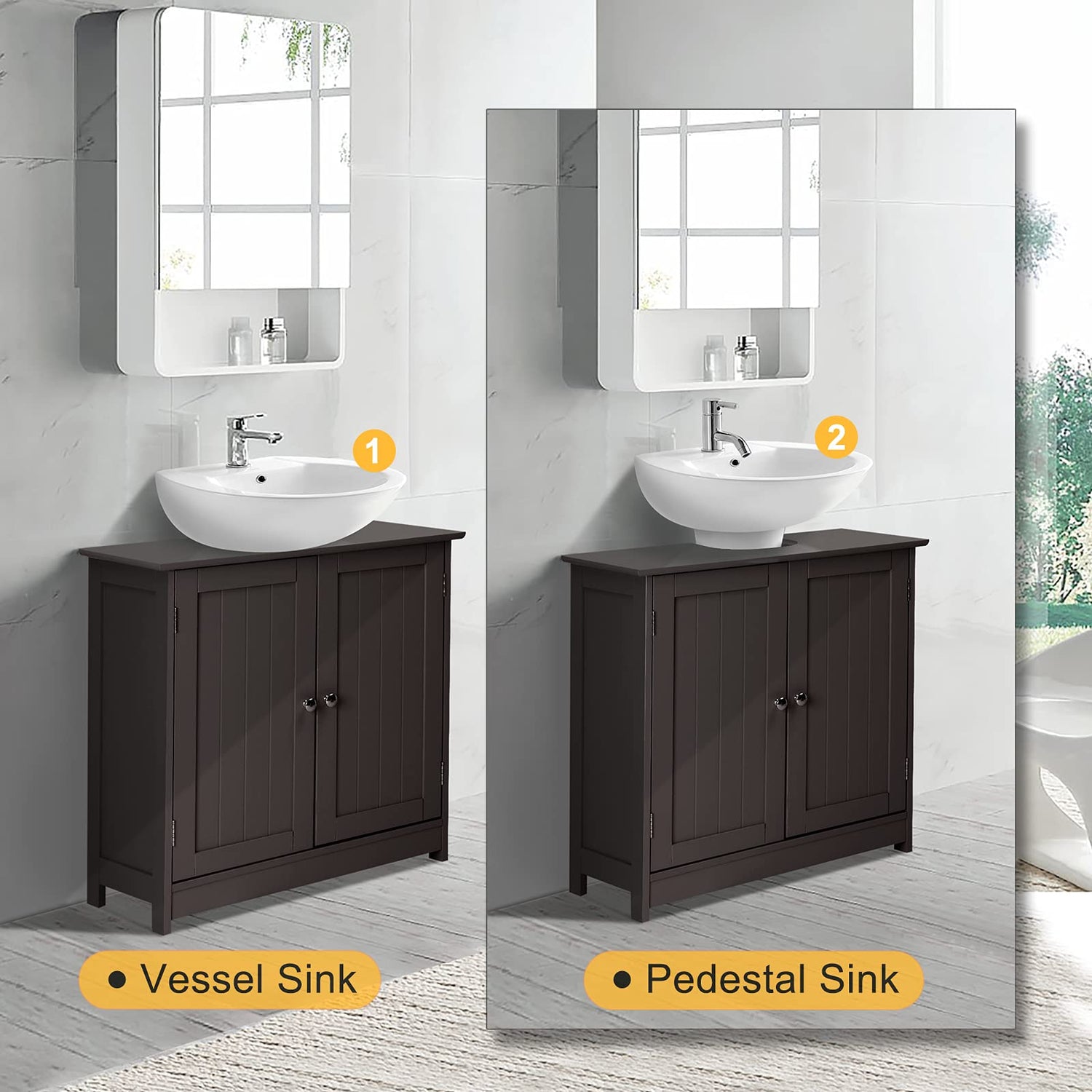 Bonnlo Pedestal Under Sink Storage Bathroom Vanity with 2 Doors Traditional Bathroom Cabinet Space Saver Organizer 23 5/8" x 11 7/16" x 23 5/8" (L x W x H) (Espresso)