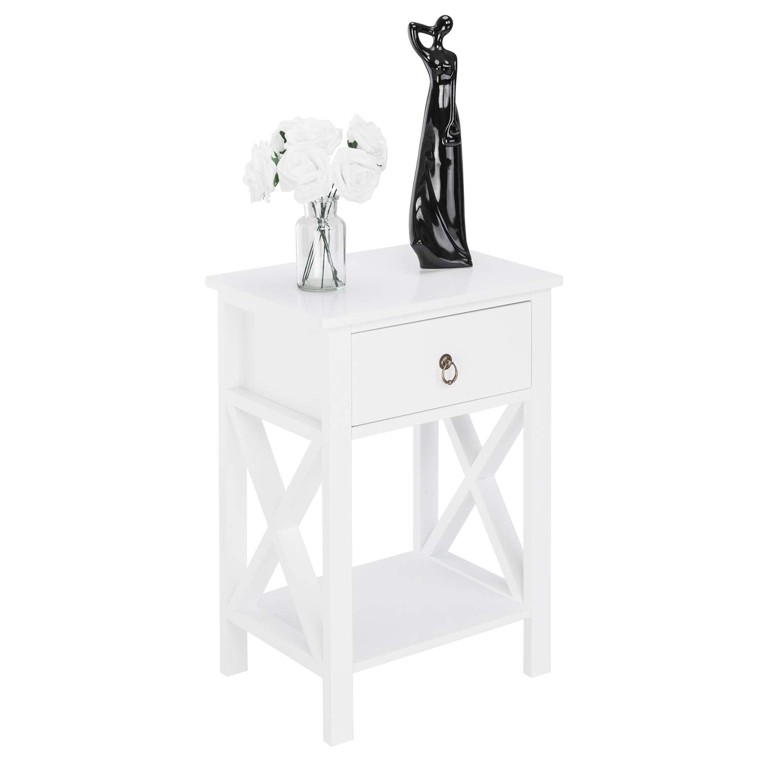 Bonnlo White Nightstand, Small Nightstand with drawer & shelf, Farmhouse Night Stand Bedroom, End Table/Bedside Table/White Side Table w/Rustic Handle for Small Spaces, Dorm, Kids Room, Living Room