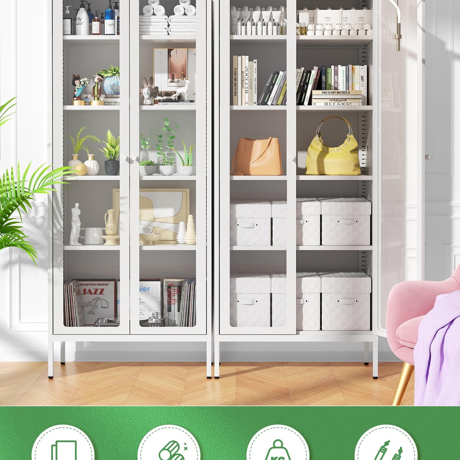 - [Modern&Simple Design]:The glass display cabinets are with the support of the advanced painting process, the color of the surface of this cabinet has been well displayed, and two rounded handles on the door are in the same color design.so as to achieve modern & Simple design concept.This product is suitable for placing in various scenes, such as office, bedroom, study, game room,etc..Besides this metal storage cabinets are also suit for to be a gift for your friends and relatives.