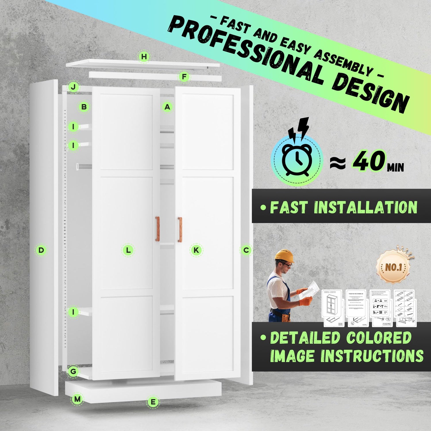 - 【Assemble Fast】: Metal storage cabinet with 2 locking wing doors can be assembled step by step according to the instruction in the box. There are 4 Pre-holes on the back of the steel cabinet, you can fix it to the wall with our screws, and make janitorial cabinet more stable