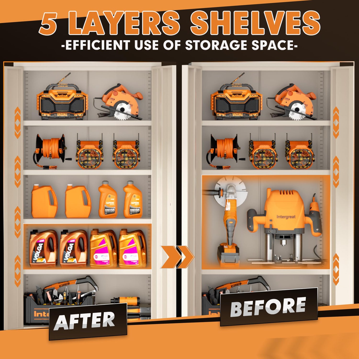 - 😊【MUTIFUCTION STORAGE CABINET】This Locking storage cabinet with shelves are our team's carefully designed products, which are dedicated to meeting different requirements for storage of goods. It also meets the requirements of the proposed installation and the pursuit of product quality. Our deeper tall cabinet can be used in garage, home office, warehouse, basement and so on.