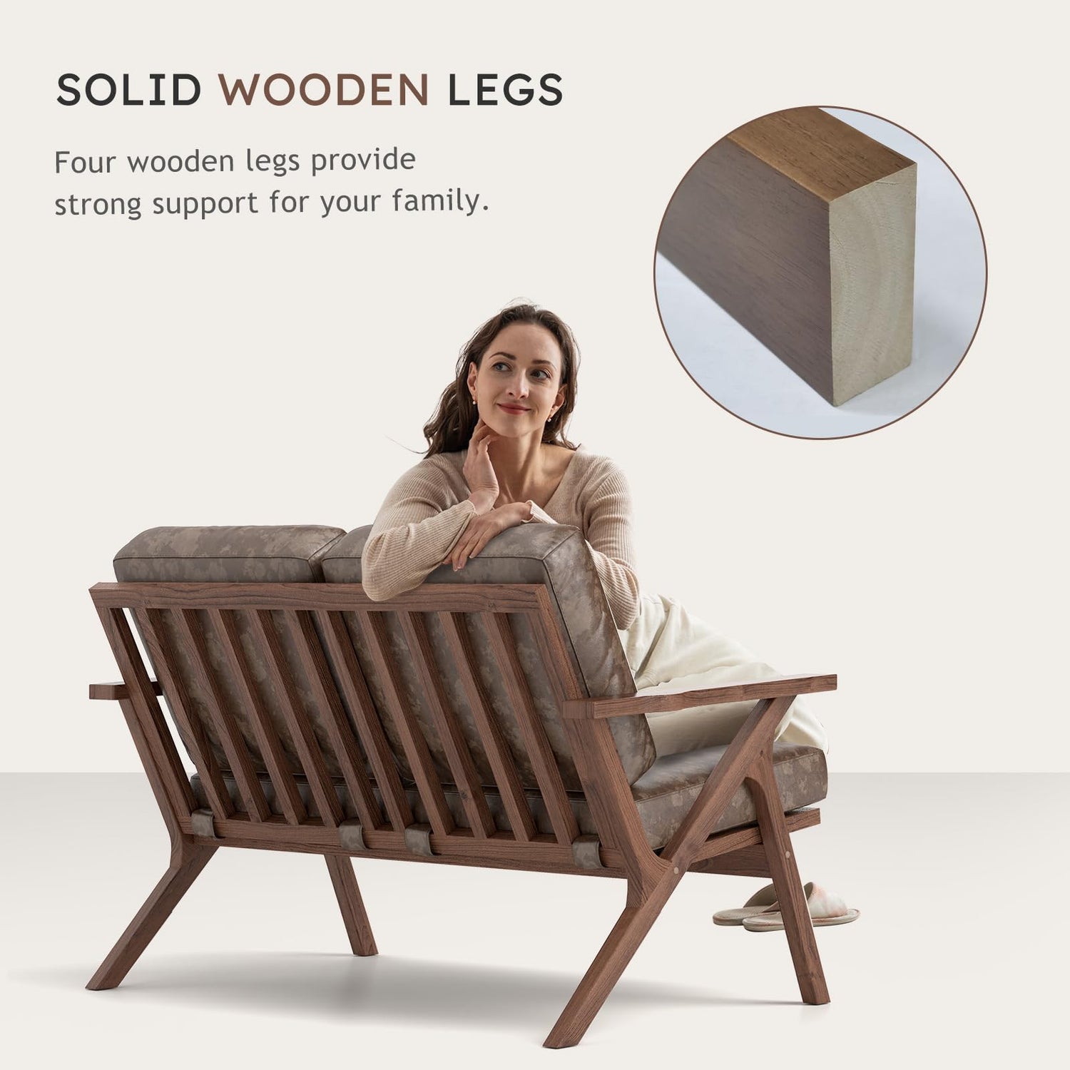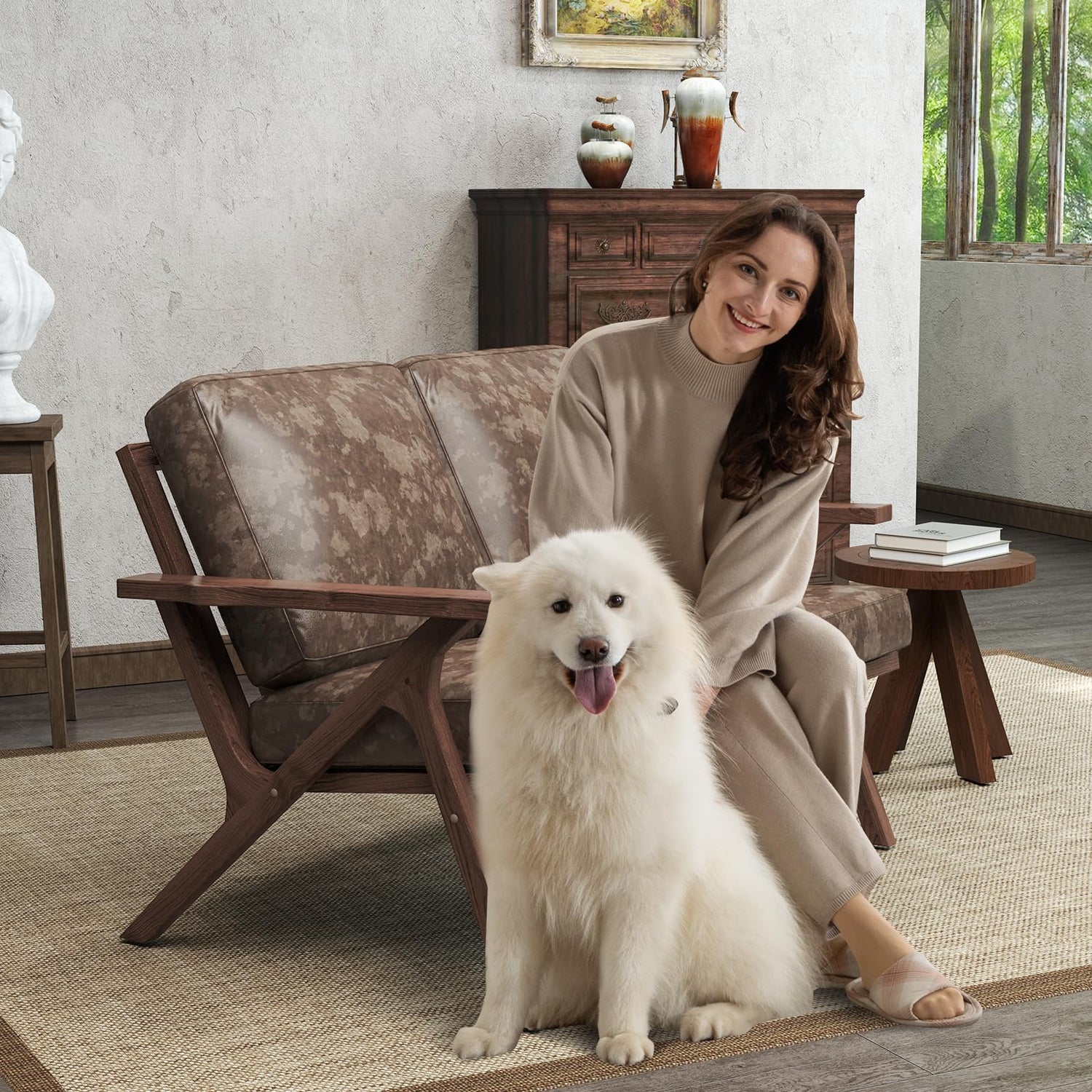 Bonzy Home 51.6" Loveseat Sofa Mid-Century Faux Leather Accent Chair, Upholstered 2-Seat Couch Loveseat with Solid Wood Frame and Cushions, Small Sofa Couch for Living Room, Bedroom,Retro Brown