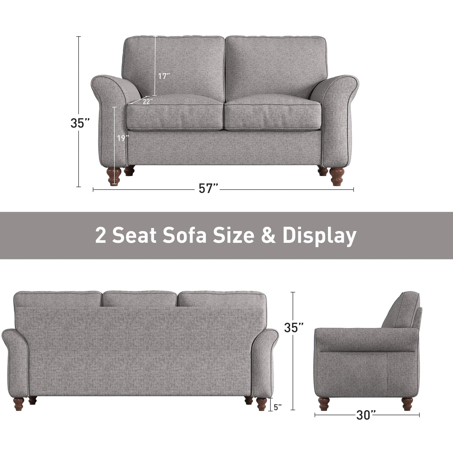 - Dimention: Overall sofa size is 30"(D)×57"(W)×35"(H). Seat size is 22"(D)×42.1"(W)×19"(H). Bonzy Home 2-seater loveseat sofa is perfectly sized for small spaces, making it an ideal choice for those who want to maximize their living area.