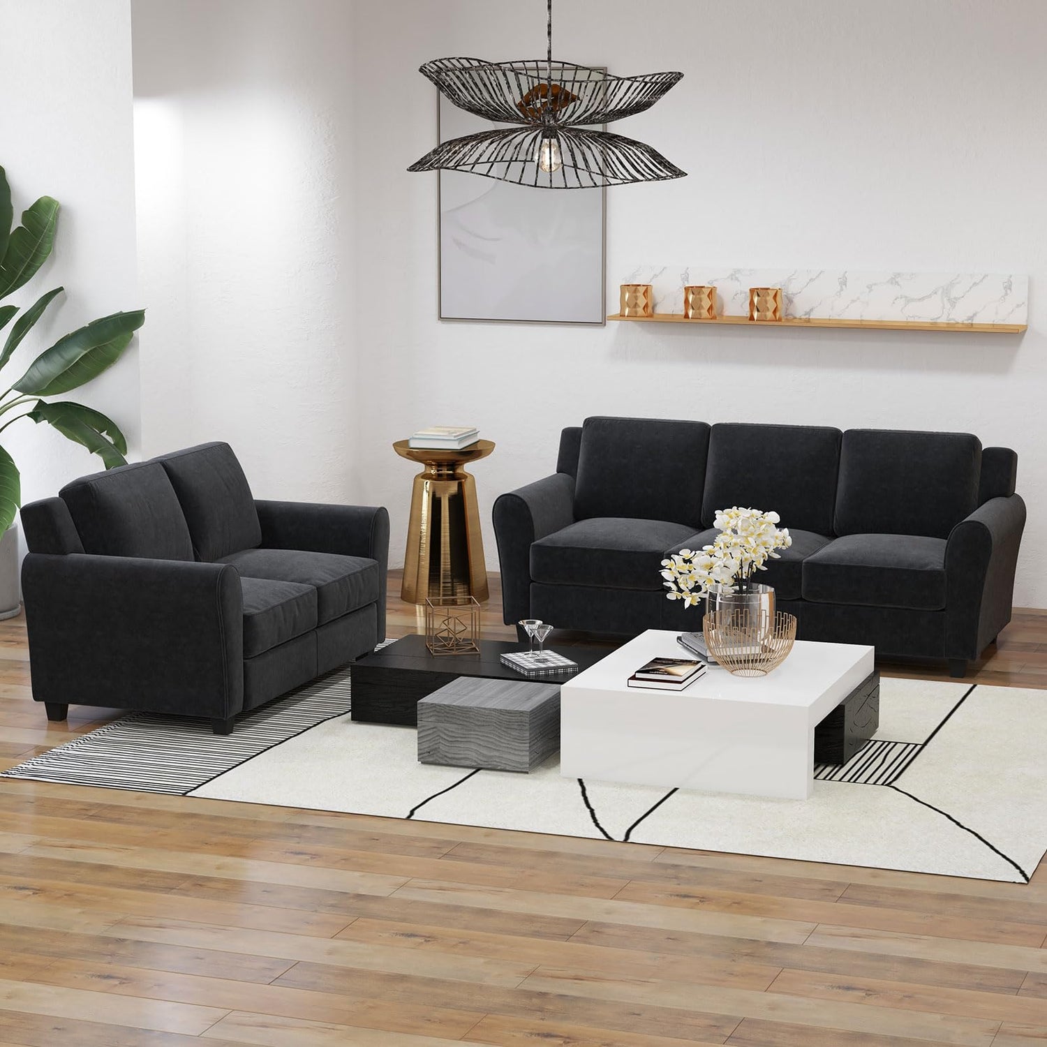 Bonzy Home 58" Black Loveseat Sofa Couch for Living Room, 2 Seater Love Seat for Small Spaces, Modern Couches with Thick Cushion for Home Apartment Office