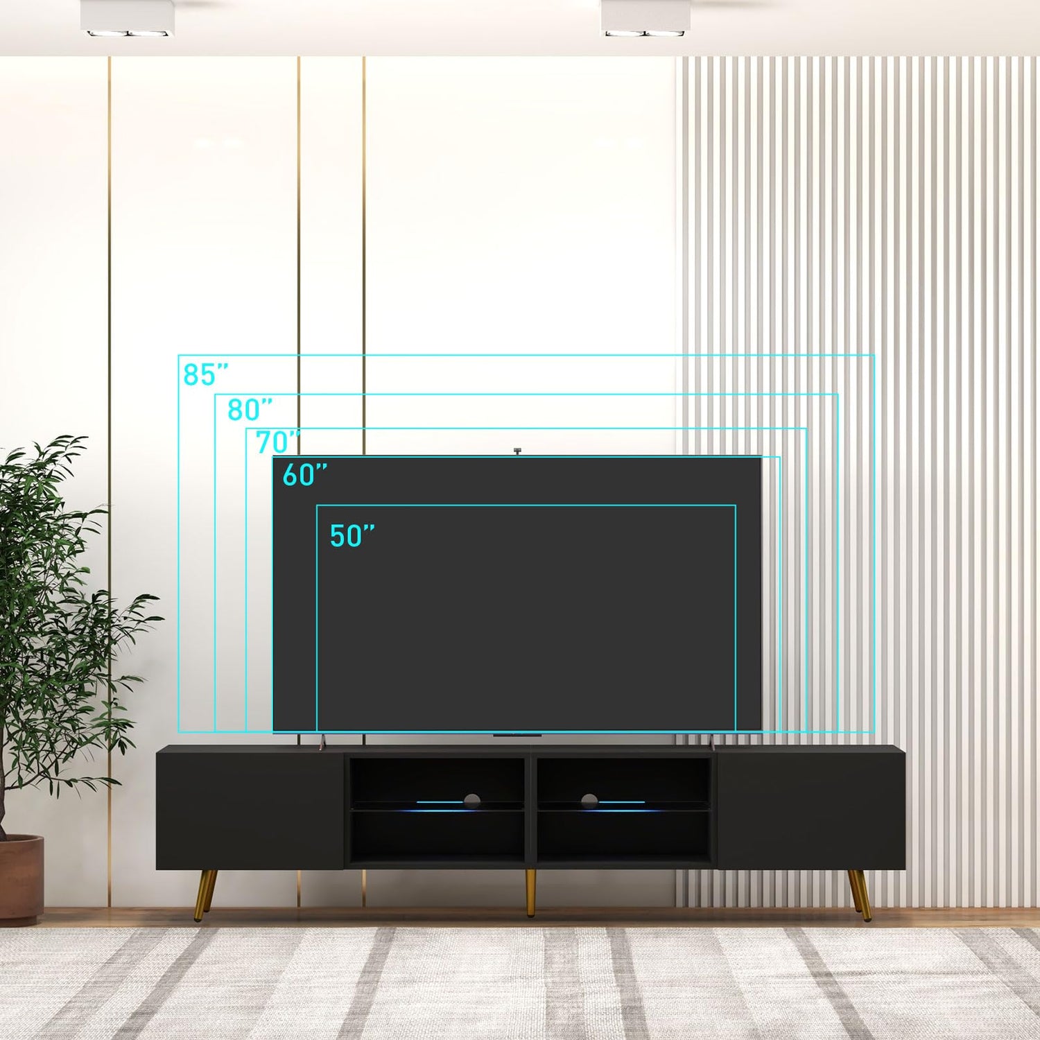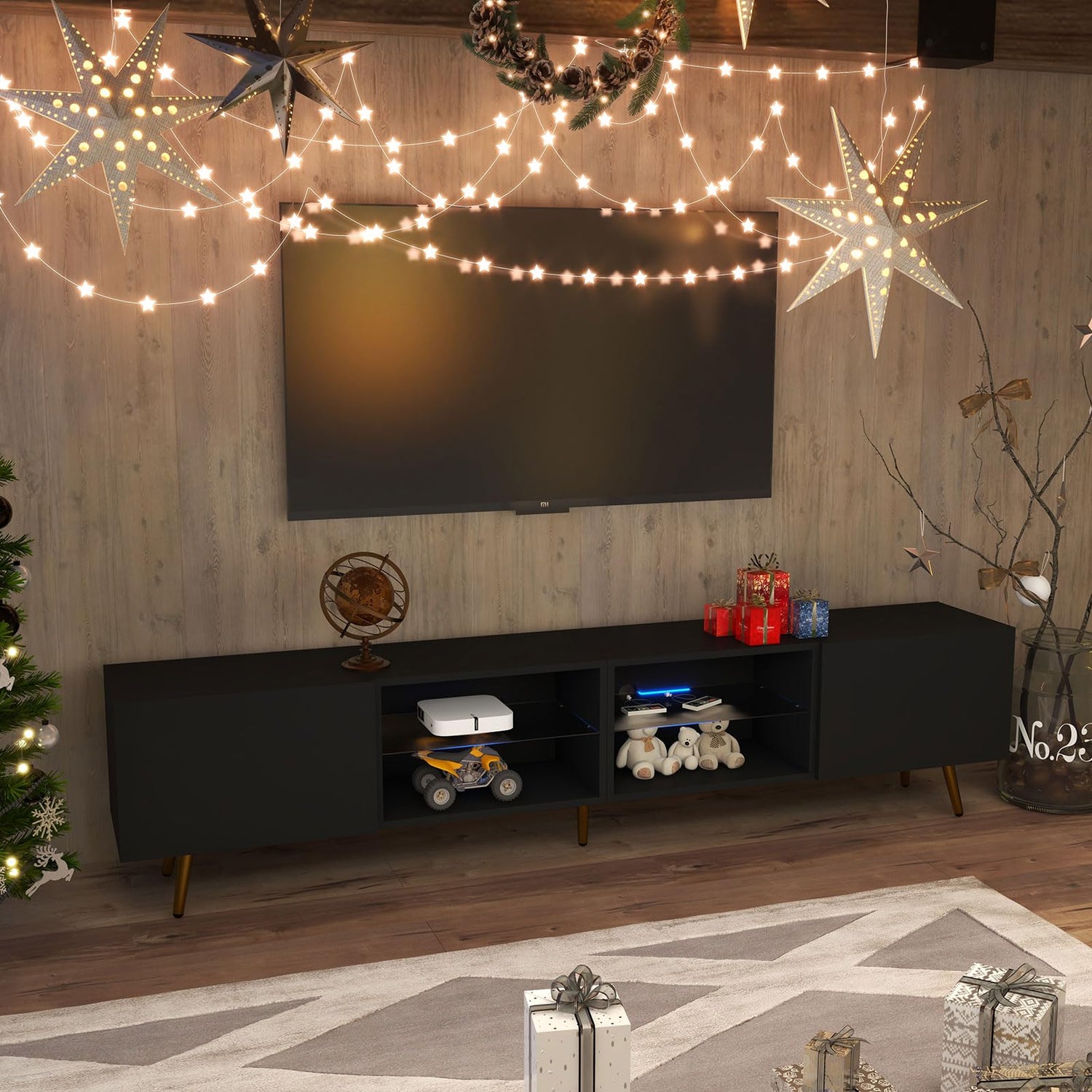 Bonzy Home 86" TV Stand, Modern Entertainment Center for 75" TV, Television Console Table with Storage Cabinets for Living Room, Black
