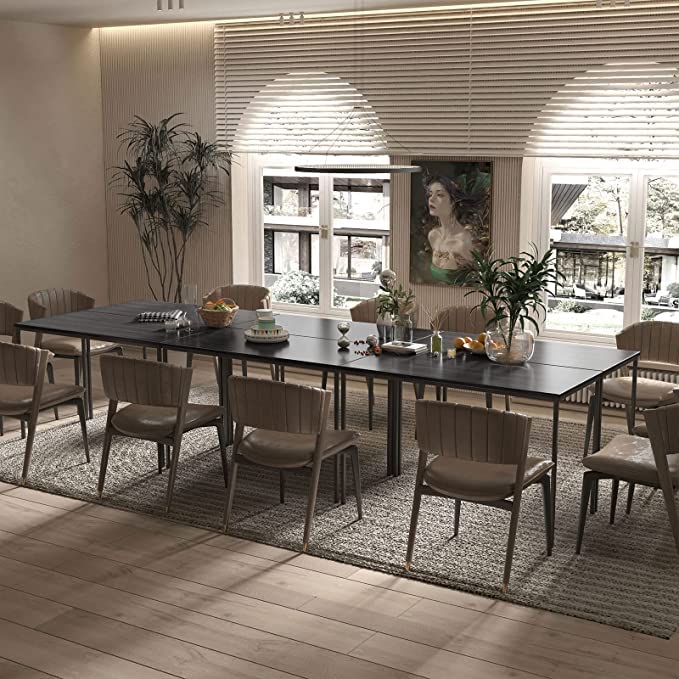 Details: Bonzy Home Conference Tables 14ft Office Computer Desk for Meeting Room Study Writing Printer Table Office Computer Desk for 16 People Save Space Design Modern 6PCS (165.3"x47.2"x29.5", Black)