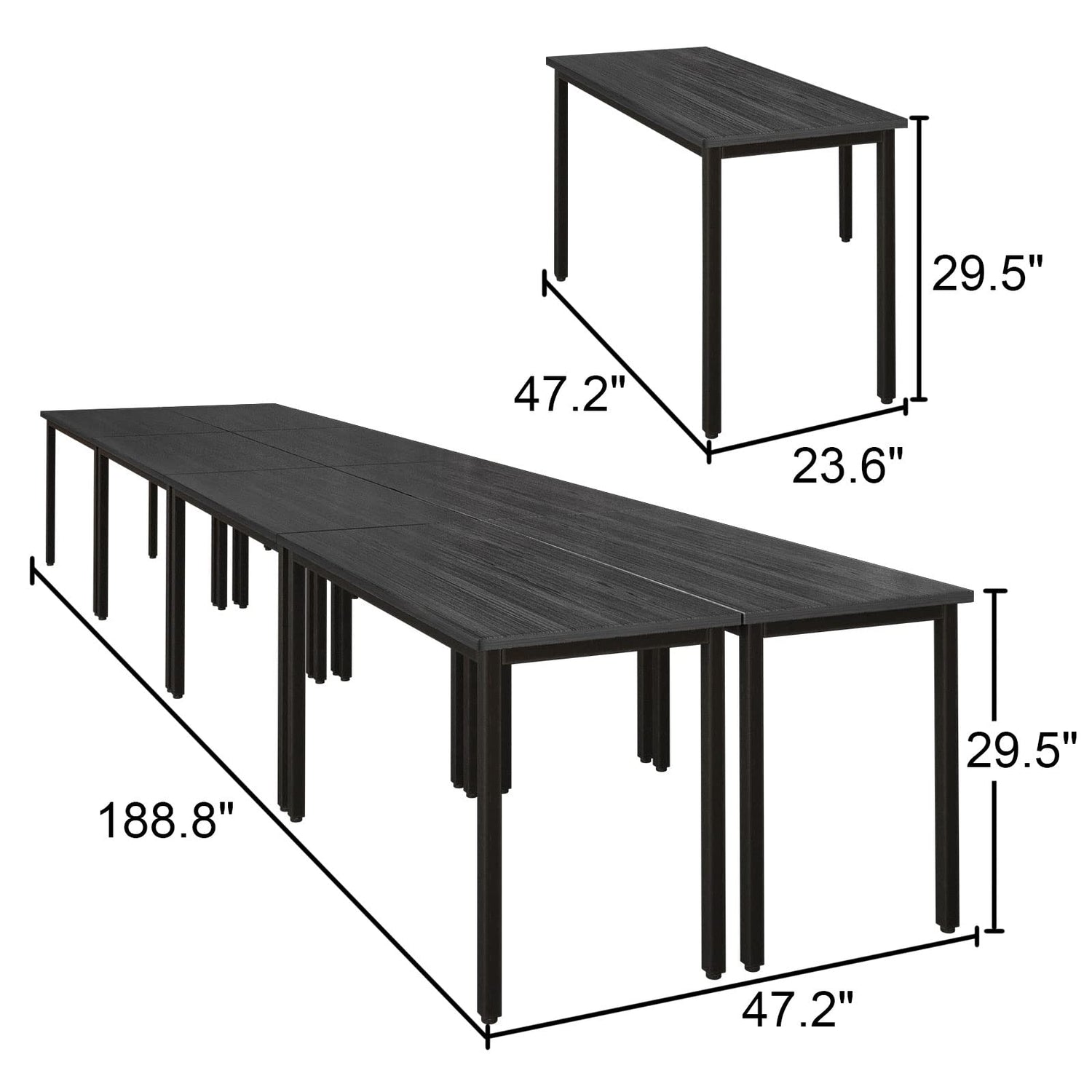 - PERFECT SIZE: 8PCS conference tables accommodate 20 people. Measuring 188.8"D x 47.2"W x 29.5"H. Dimension of each single computer desk is 47.2" L x 23.6" W x 29.5" H for random combination. Stylish and Sleek design ideal for any office, conference room, meeting room and study room.