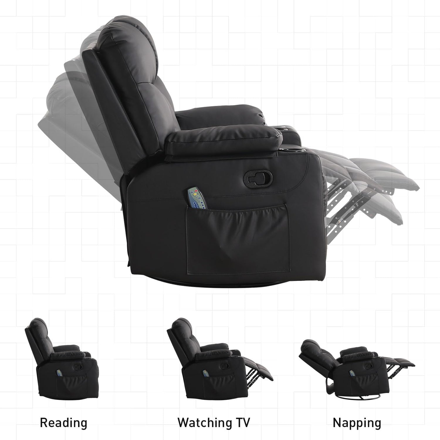 - Effortless Swivel and Rocking Motions: Perfect for any seating arrangement, this manual oversized recliner offers both swivel and rocking capabilities, allowing you to rotate 360 degrees or gently rock. This makes it a versatile addition to your living room, bedroom, or office.