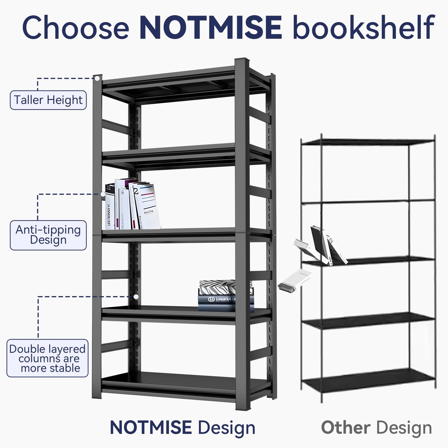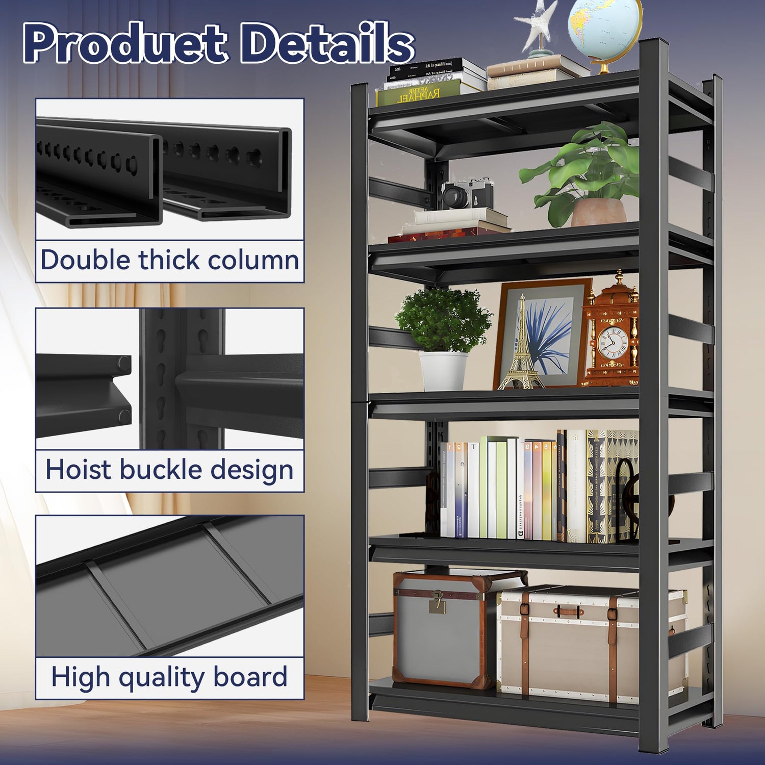 - [Multi-function Storage Shelving] This black bookshelf offers 5 tiers of open storage, each holding up to 600 pounds. It’s perfect for organizing books, garage kits, CDs, souvenirs, and electronics. This black bookshelf adds a practical and stylish touch to your living room, study, or bedroom. The metal bookshelf brings a modern look and helps keep your home neat and organized