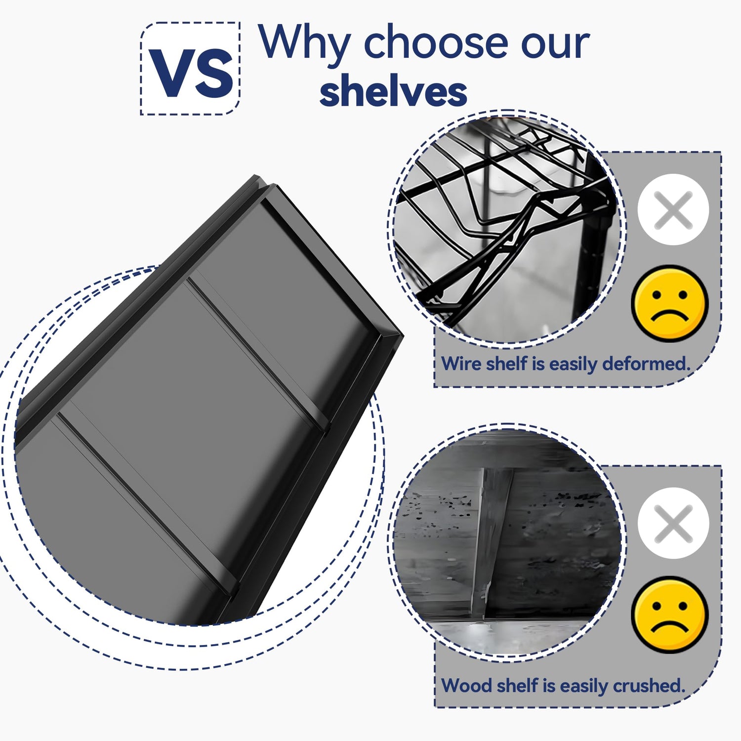 - [Sturdy and Durable] This metal bookshelf is built with a strong metal frame, making it tall, solid, and sturdy. Its laminated surface is waterproof, scratch-resistant, and easy to clean. The metal bookshelf will last for years. The black bookshelf also offers excellent durability, providing stable storage for your items