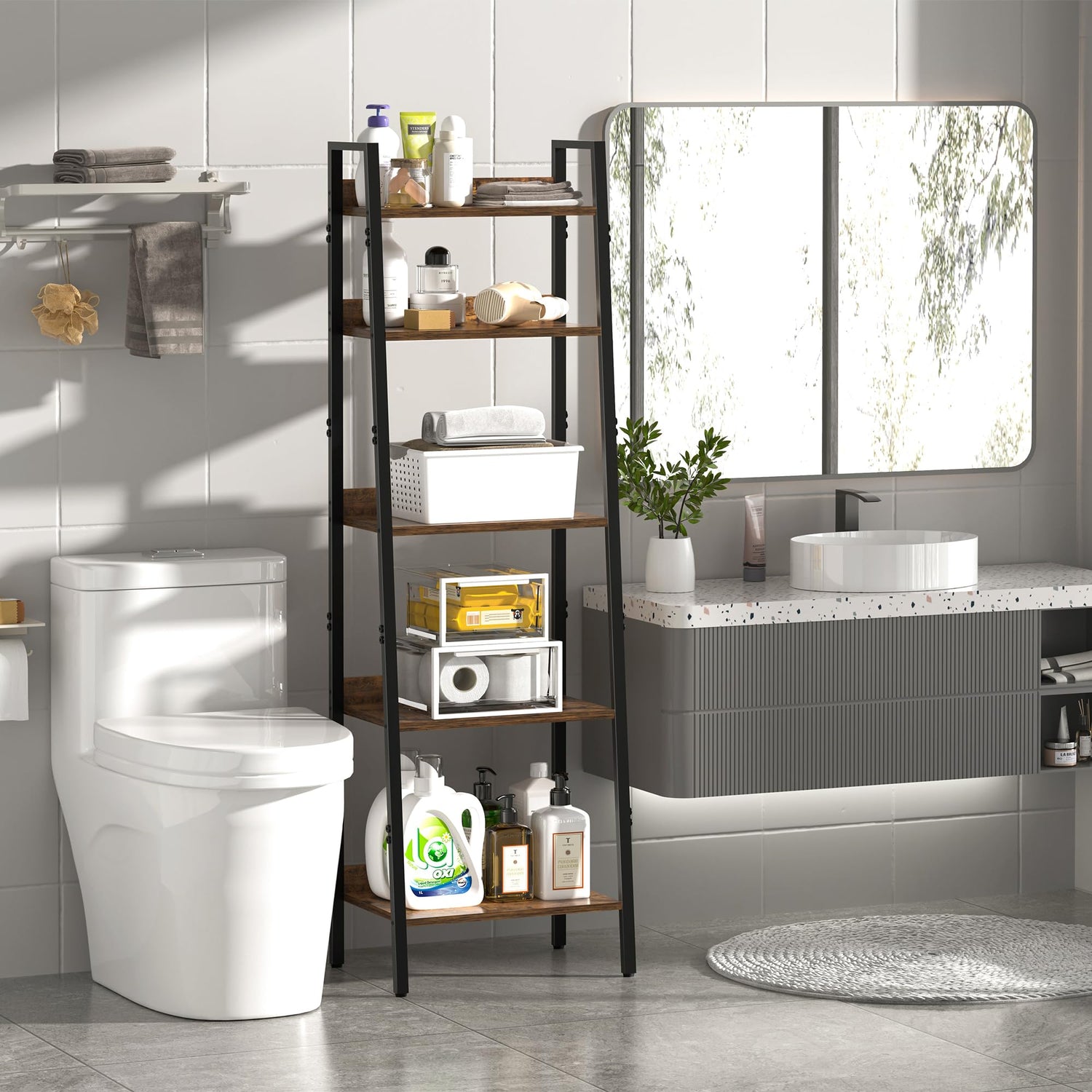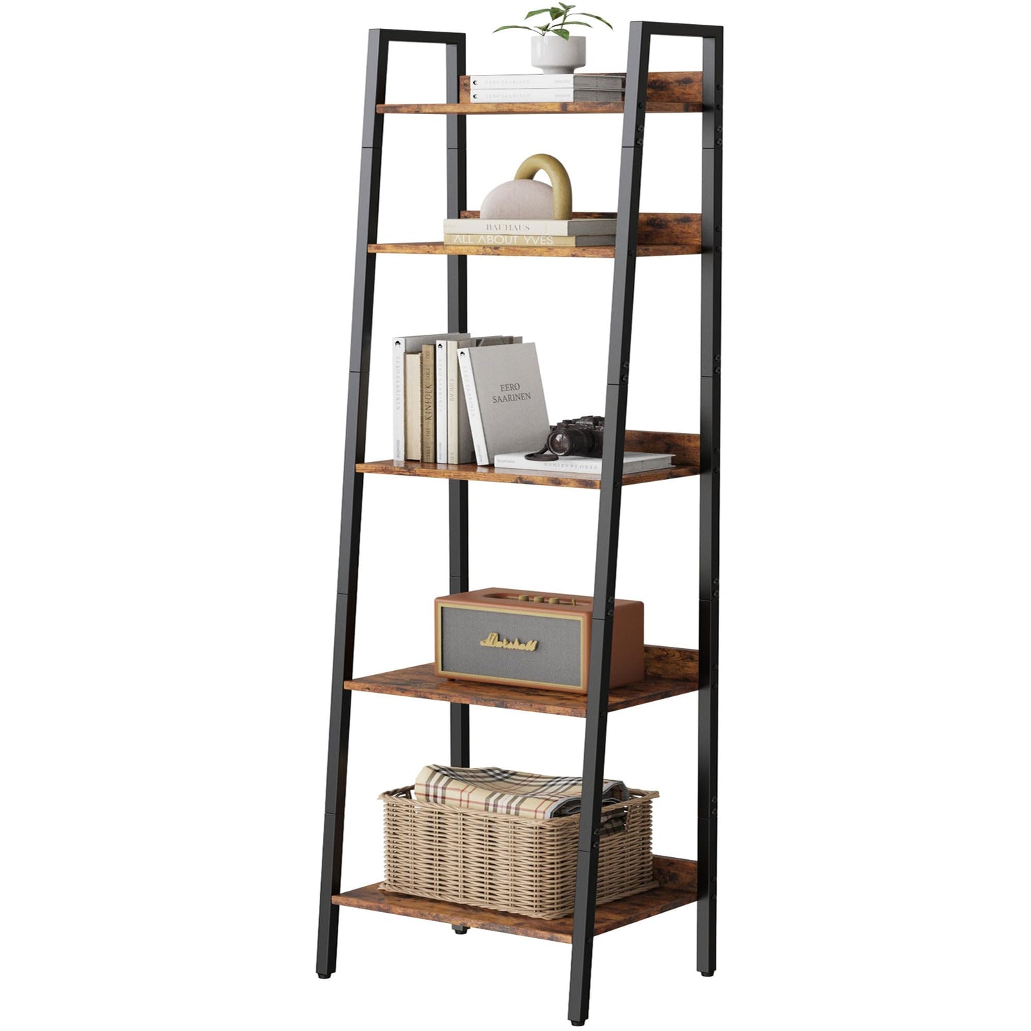 Bookshelf, Ladder Shelf with Steel Frame, 5-Tier Industrial Bookcase, Narrow Tiered Shelf for Small Space, Corner Shelf for Living Room, Home Office, Kitchen, Bedroom, Bathroom(Rustic Brown & Black)