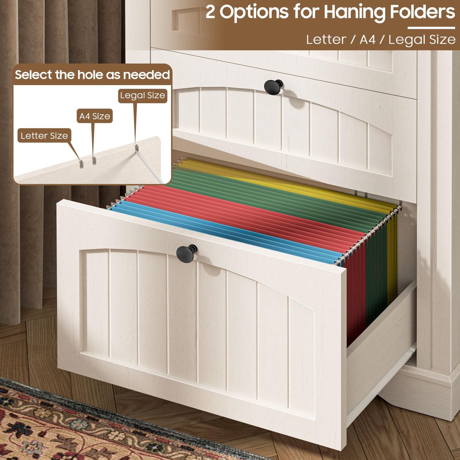 Bookshelf with File Drawers for Letter/A4/Legal Size Hanging Files, 68" Tall Farmhouse Bookcase with 3-Tier Open Shelves, Wood Floor Display Storage Cabinet for Home Office, Living Room, Rustic White