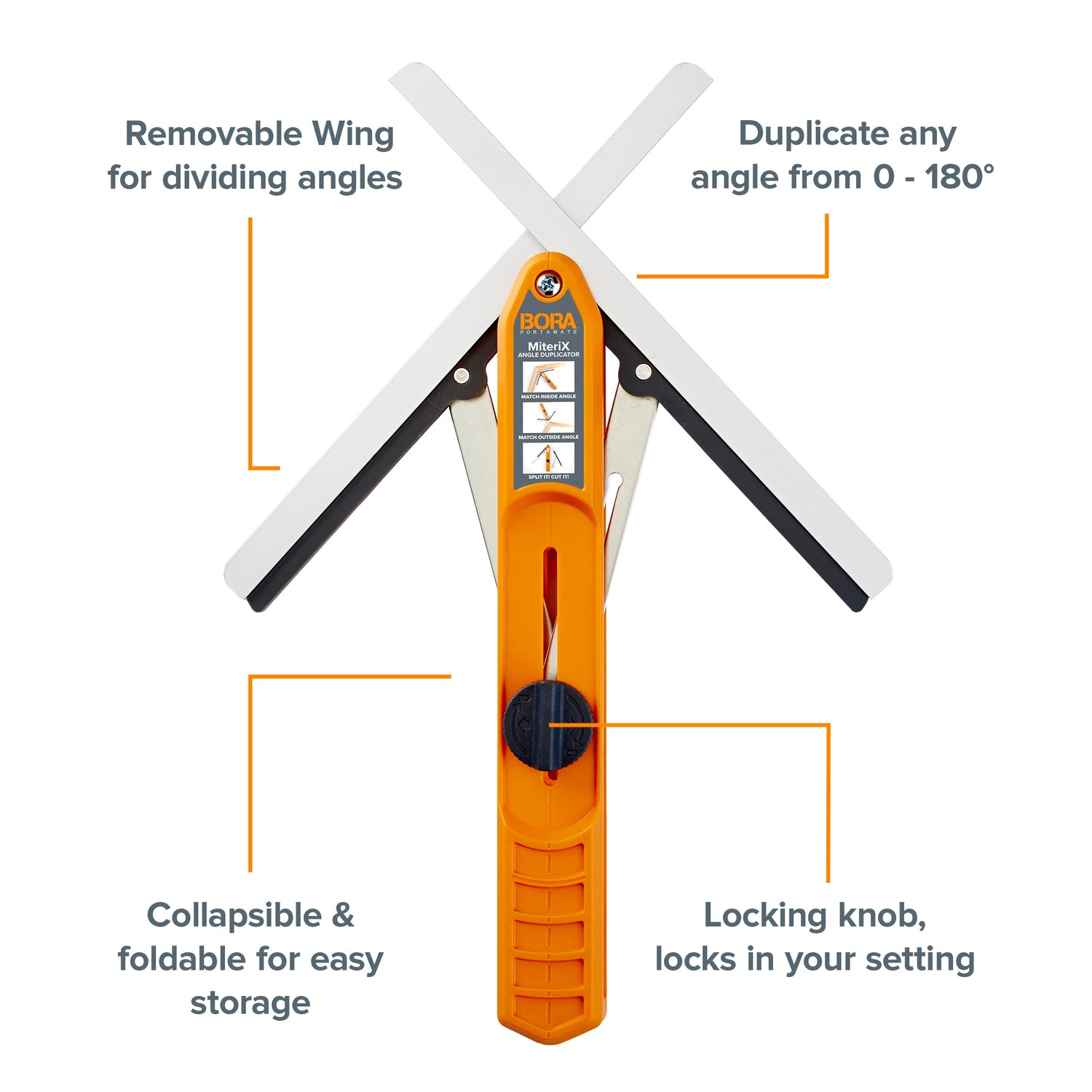 - Carpenter Must-Have: The BORA MiteriX is simpler and more accurate than standard protractors. It’s ideal for crown molding, casing, baseboard, trim, laminate flooring, decks, and more; a valuable tool for finish carpentry and DIY home improvement projects