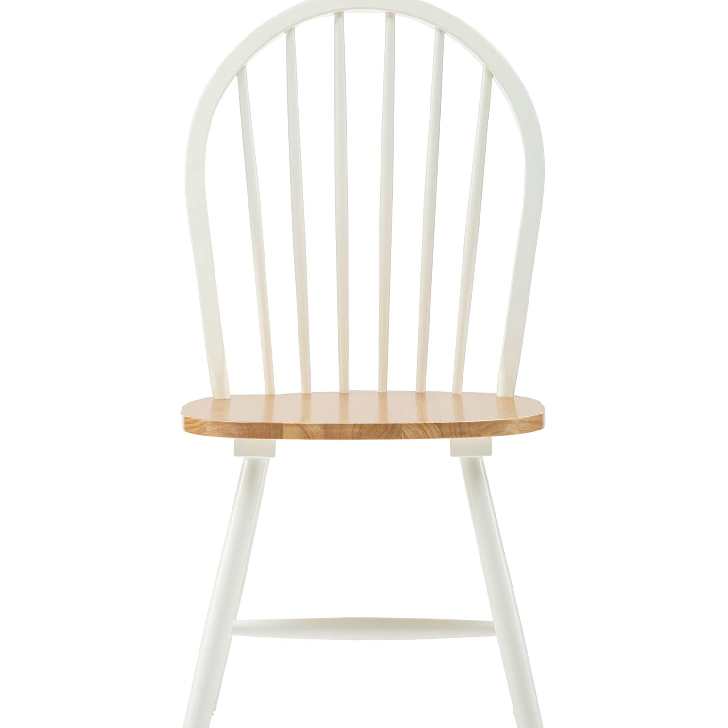 Details: This delightful Farmhouse Chair captures the simplicity and elegance that makes farmhouse style an enduring classic. The Windsor-inspired chairback has a classic spindle design. It comes in a two-toned finish, with a glossy, polished wood seat which is shaped for comfort. This dining chair is made from solid hardwood to ensure it can withstand years of family dinners and Sunday brunches. Choose your preferred color combination: White & Natural or Black & Cherry. Comes in a set of two matching chairs. *Please note that the listed product weight is for a single chair*