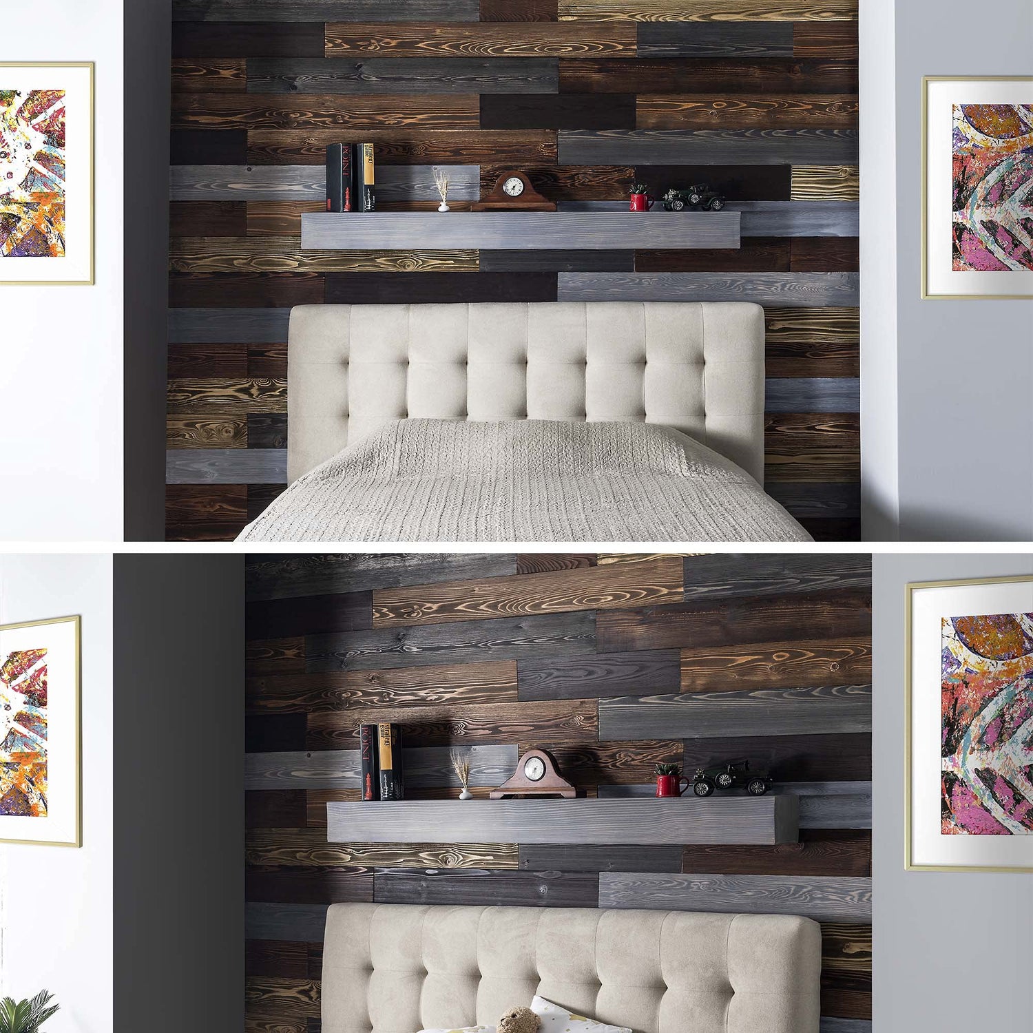 - 🌲 [SOLID WOOD, RUSTIC SURACE]: Bring the beauty of nature and rustic shiplap boards, farmhouse character into your living space. The barnwood planks are made of solid pine wood with authentic grains and knots and they are double-sided; Both sides can be selected to be used.