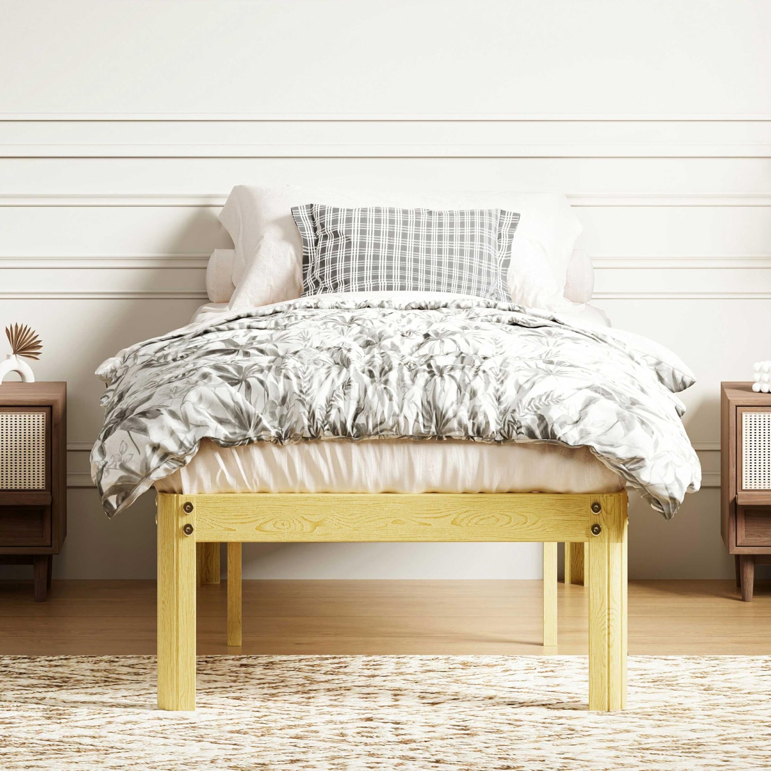 - Wood Grain Appearance: The bed frame features a pine wood grain exterior, creating a warm and natural look that adds a touch of coziness to any bedroom.