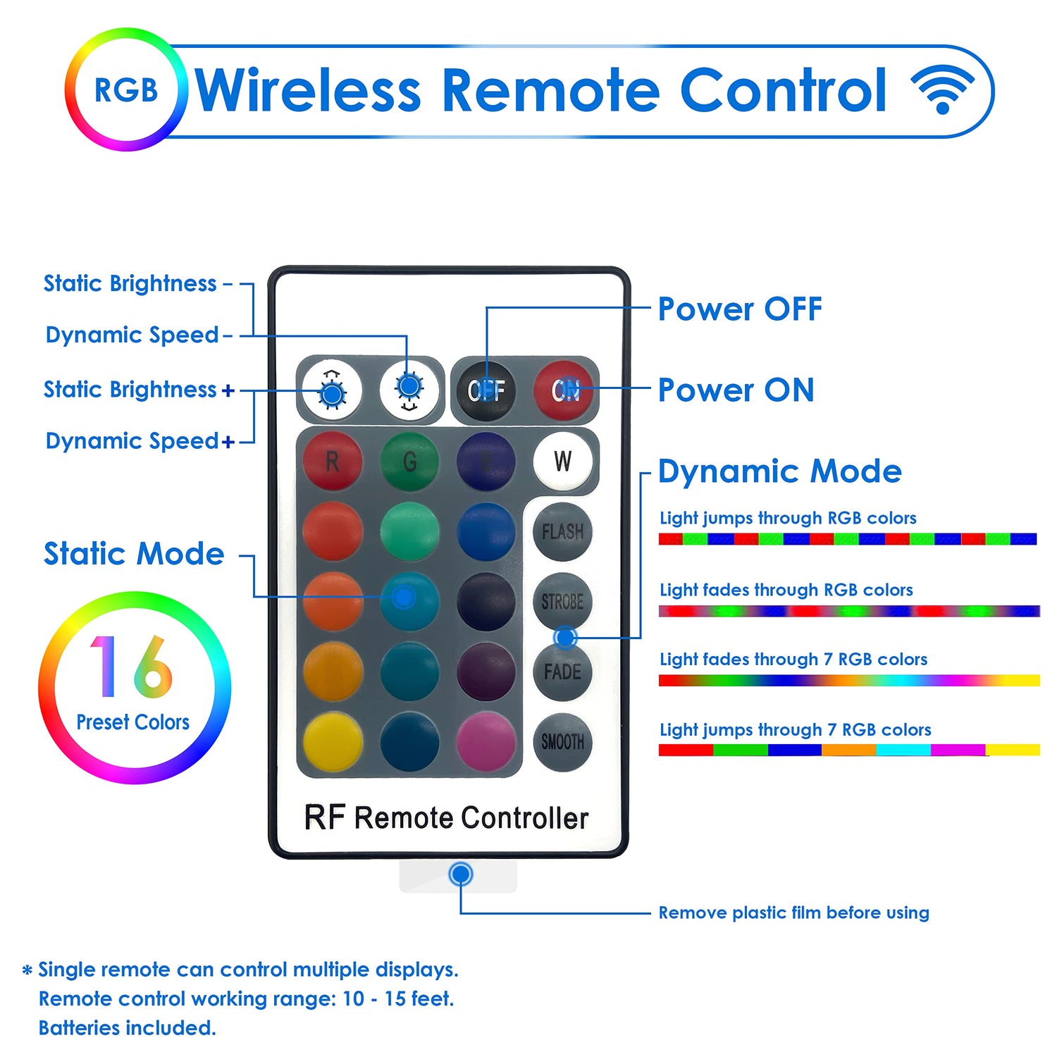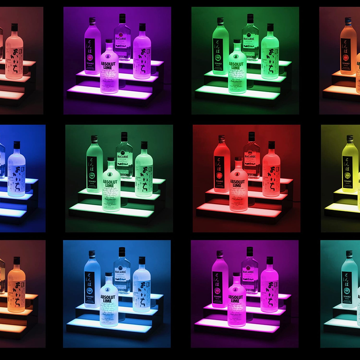 - CUSTOM LED LIGHTING – The wireless remote includes a range of 16 color combinations and 4 dynamic modes, including flash, strobe, fade, and smooth, allowing for complete customization of the liquor display. In addition to controlling the brightness and speed of the display, this LED bottle display adds a vibrant touch to home bar decor and takes wet bar accessories to the next level.