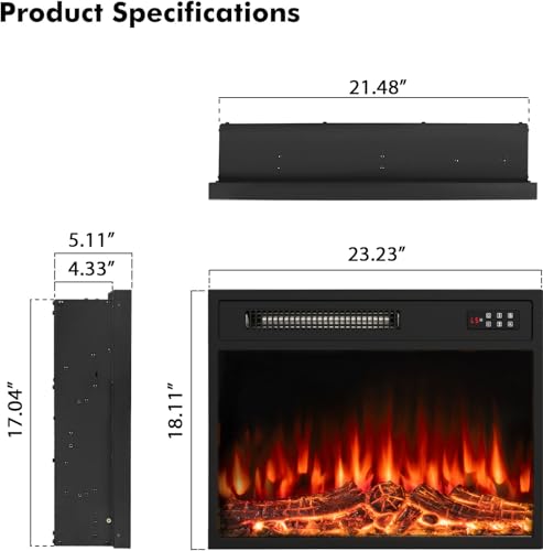 - Decor & Installation: This 23 inch electric fireplace inserts is a perfect home decor for all kinds of places such as office,home and living room. In addition, it’s easy to assemble with install instructions included in the package. Dimension: 5.11"D x 23"W x 17.72"H