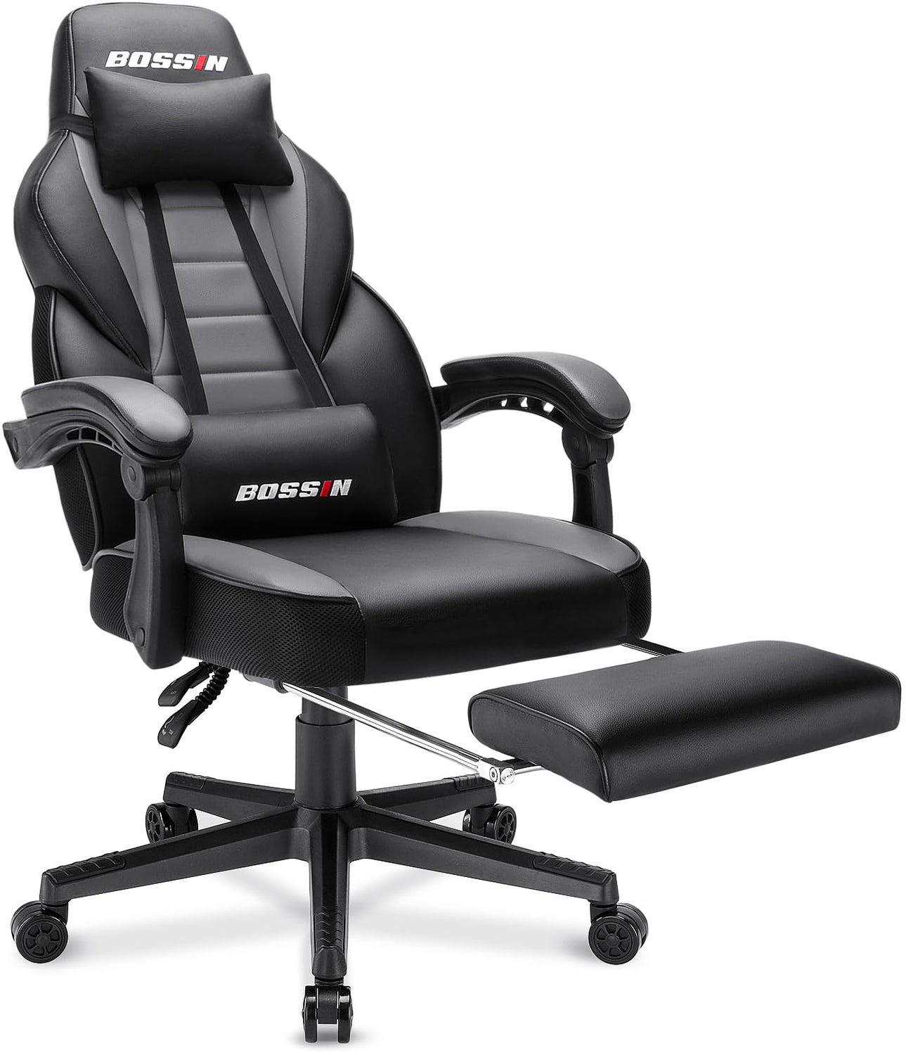 BOSSIN Gaming Chair with Massage, Ergonomic Heavy Duty Design with Footrest and Lumbar Support, Large Size Cushion High Back Office Chair, Big and Tall Gaming Computer Chair for Kids