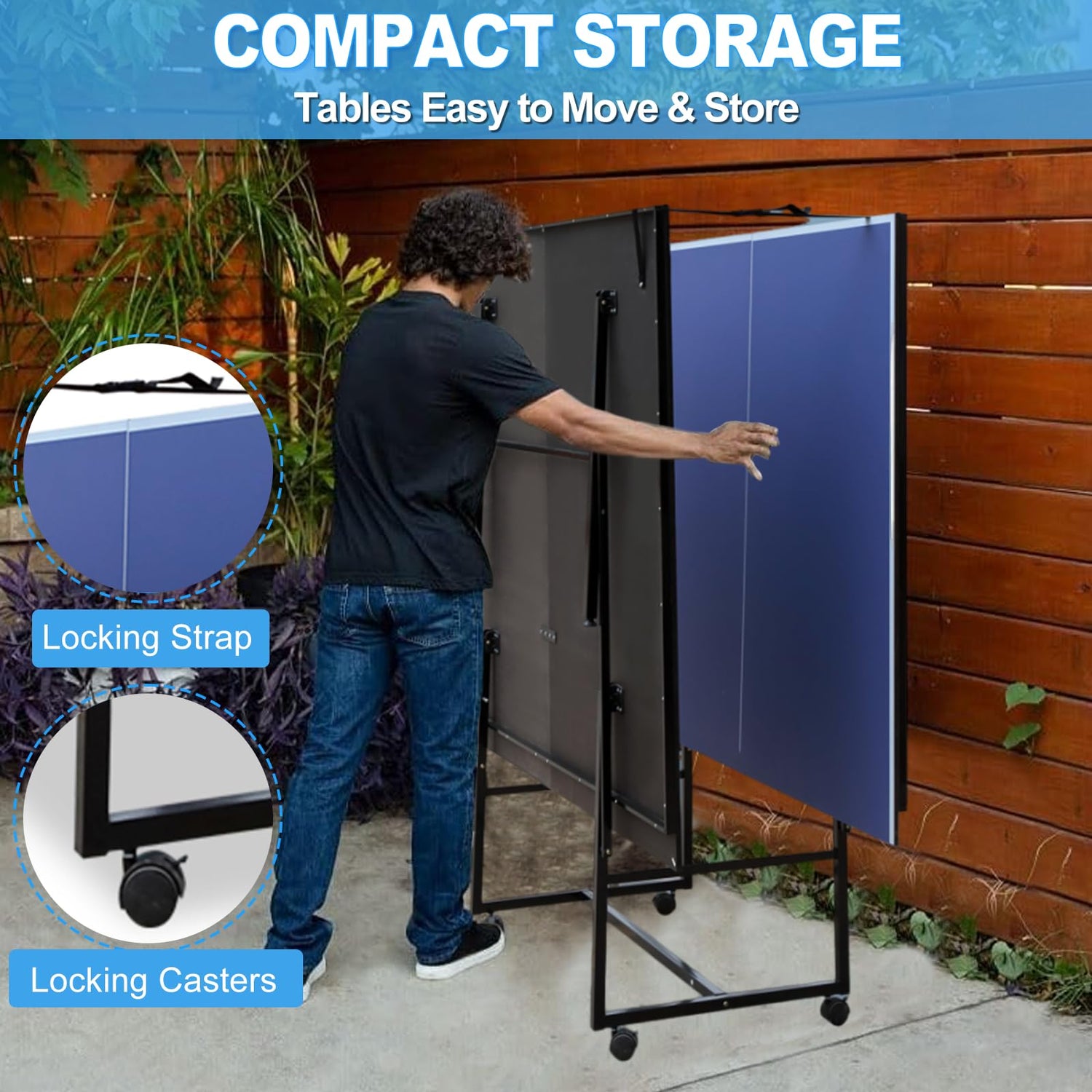 - 🏓【Multi-Functional Table】Our ping pong table foldable can not only be used to play table tennis, it is also ideal for playing poker board games and any other table games. It is suitable for any room, apartment, office when used as a table tennis tables and living room table. The removable net allows you to easily transform your gaming table into the perfect outdoor dining table.