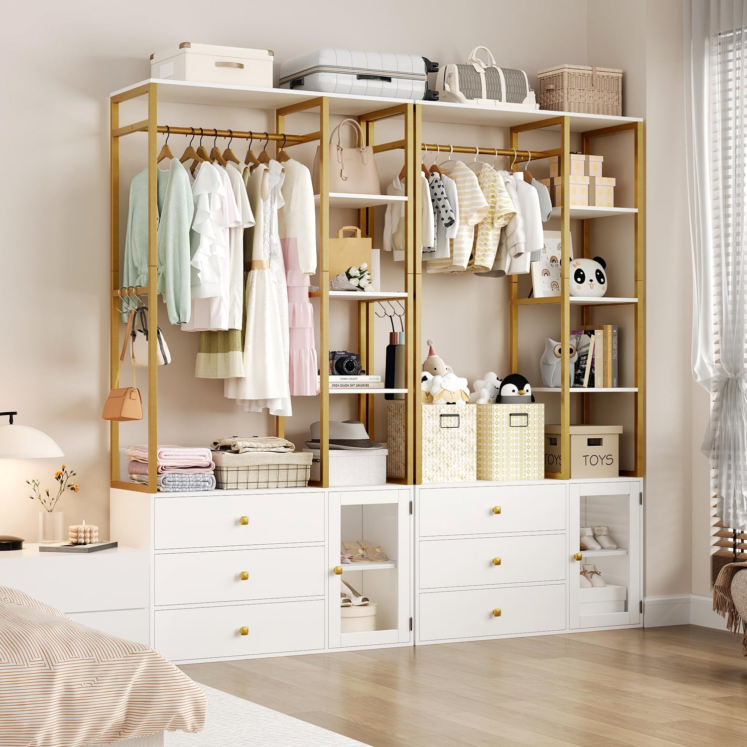 BOTLOG Closet Organizer, 81.2”H Wardrobe Closet with Hanging Rod and Storage Shelves, Garment Rack for Bedroom, Living Room(2PCS)