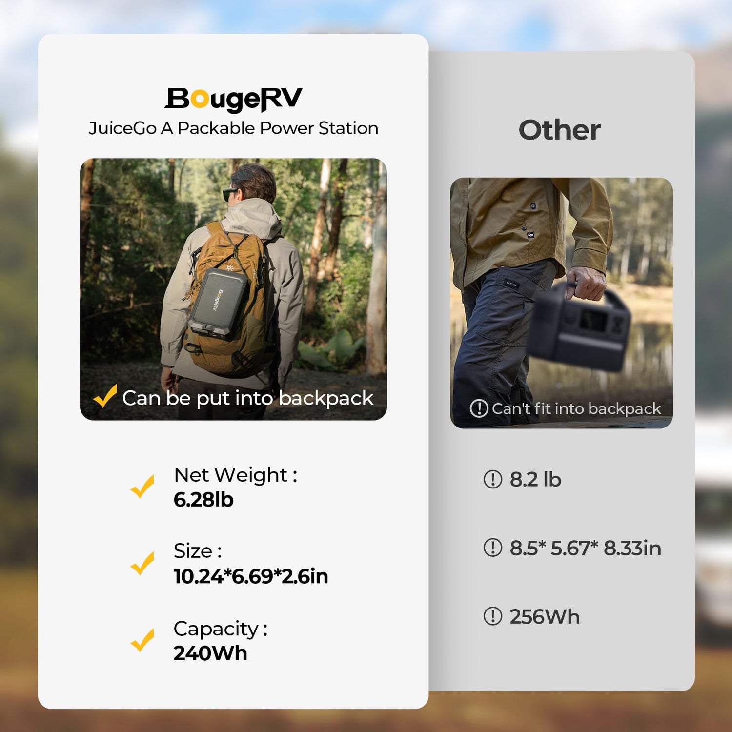 BougeRV 240Wh Portable Power Station, Solar Generator with AC outlet, JuiceGo LiFePO4 Generators for Emergency Power Supply, Camping, Travel, Home Backup, and RV