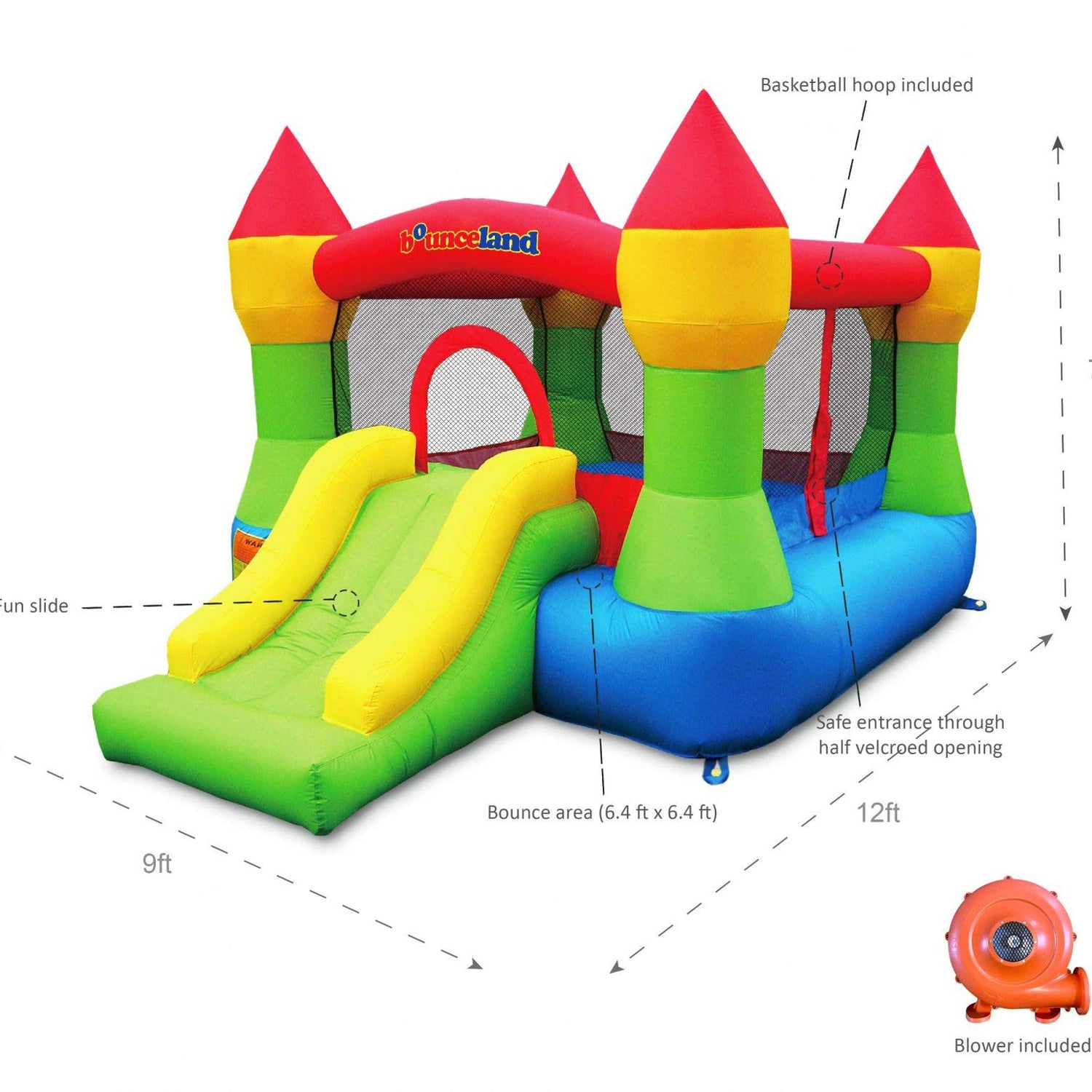 Bounceland Bounce House Castle with Basketball Hoop Inflatable Bouncer, Fun Slide, Safe Entrance Opening, UL Certified Strong Blower Included, 12 ft x 9 ft x 7 ft H