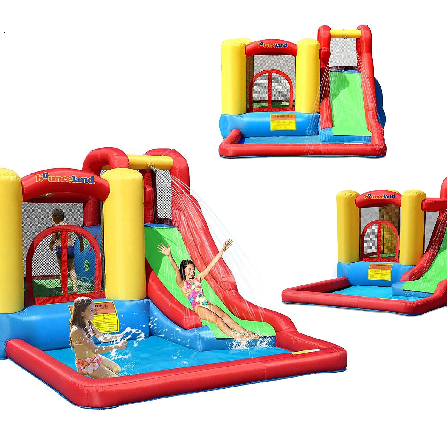 Bounceland Jump and Splash Adventure Bounce House or Water Slide All in one, Large Pool, Fun Bouncing Area with Basketball Hoop, Long Slide with Climbing Wall, UL Certified Blower Included