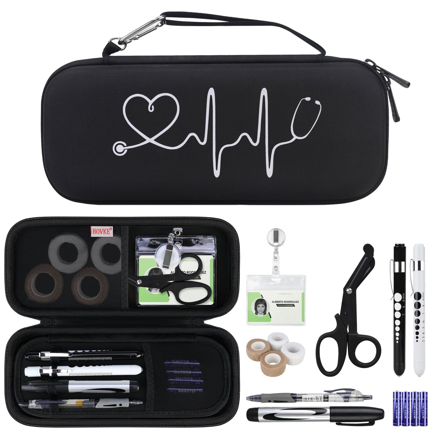 BOVKE Stethoscope Case Kit, 15 Pcs Tool Set Perfect Nurse Gift Include Stethoscope Case, Medical Scissor, Bandage Wraps, 2 Penlights with Batteries, Bandage Holder for Nurses, Black+Black