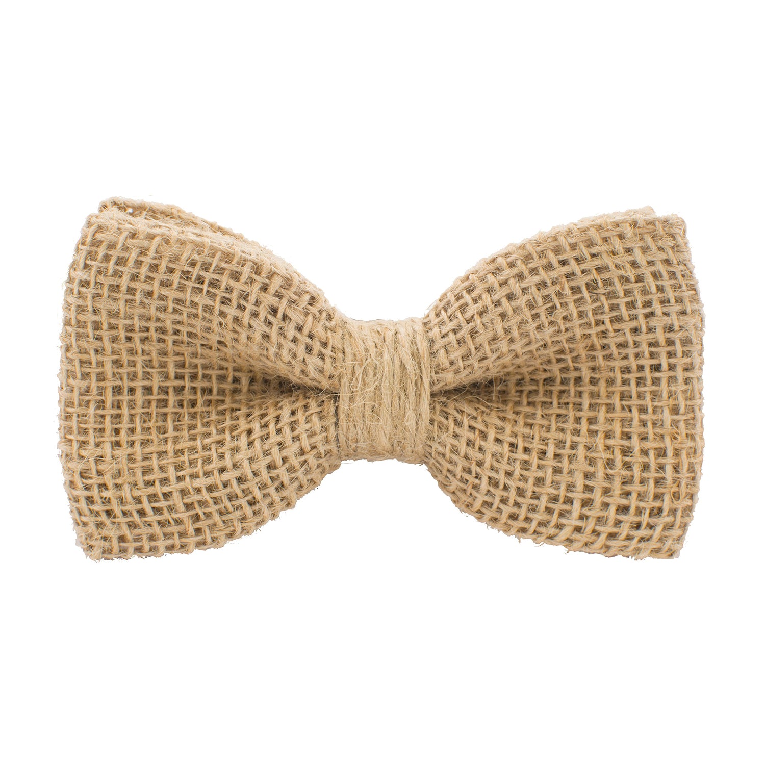 Bow Tie House Rustic Pre-Tied Bow Tie in 100% Burlap Hessian (Beige, Large)