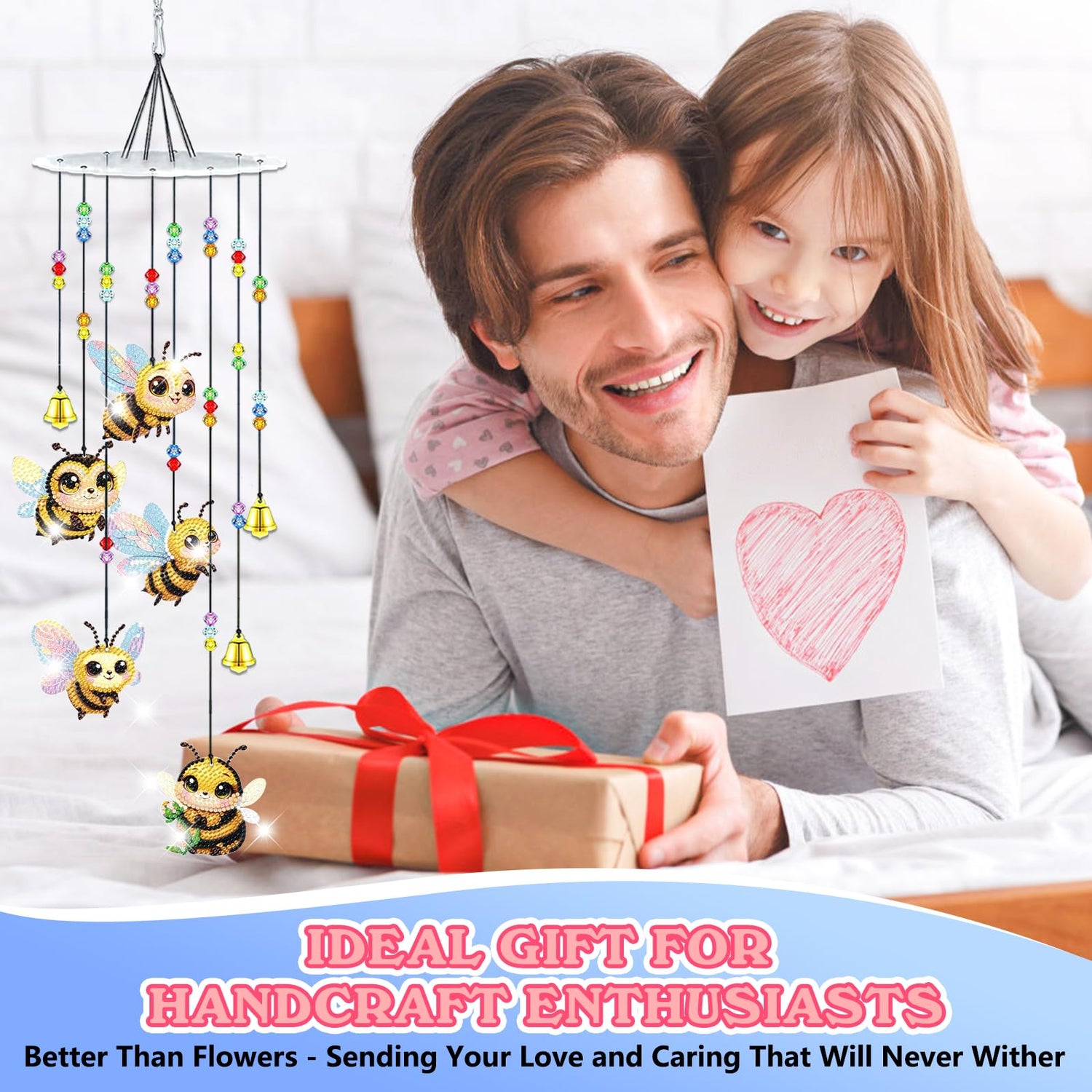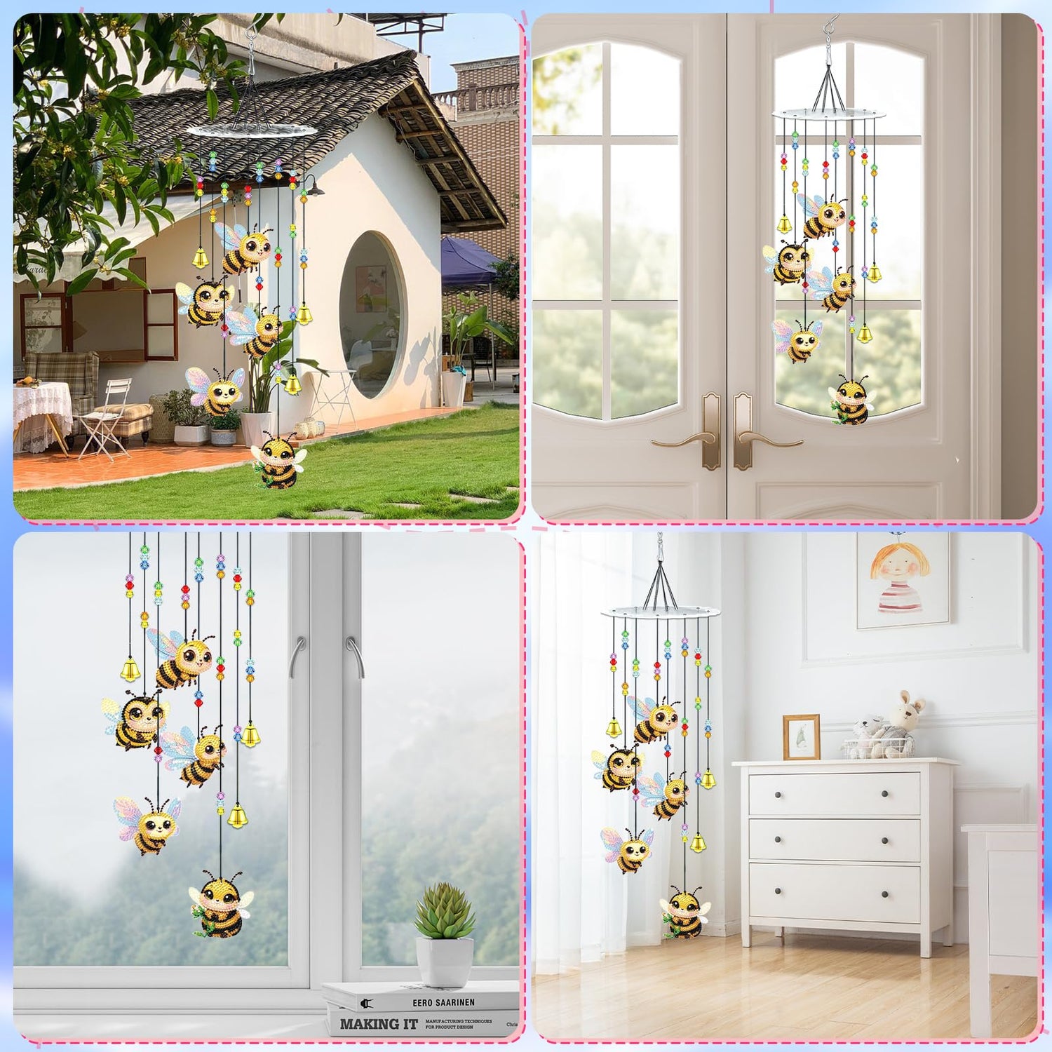 Bowetile 5D Diamond Art Kits for Adults, Bee Diamond Art Wind Chimes, Diamond Painting DIY Wind Chime Kit, Diamond Painting Wind Chimes Suncatchers, Art Kits for Adults Teens Garden Home Decor