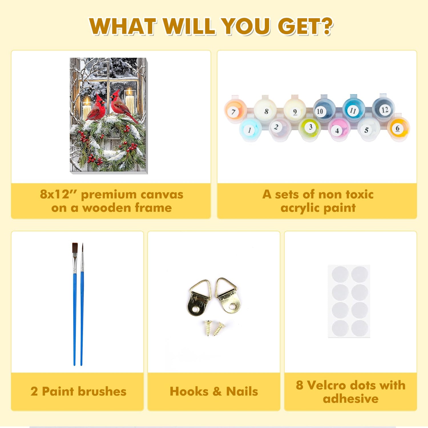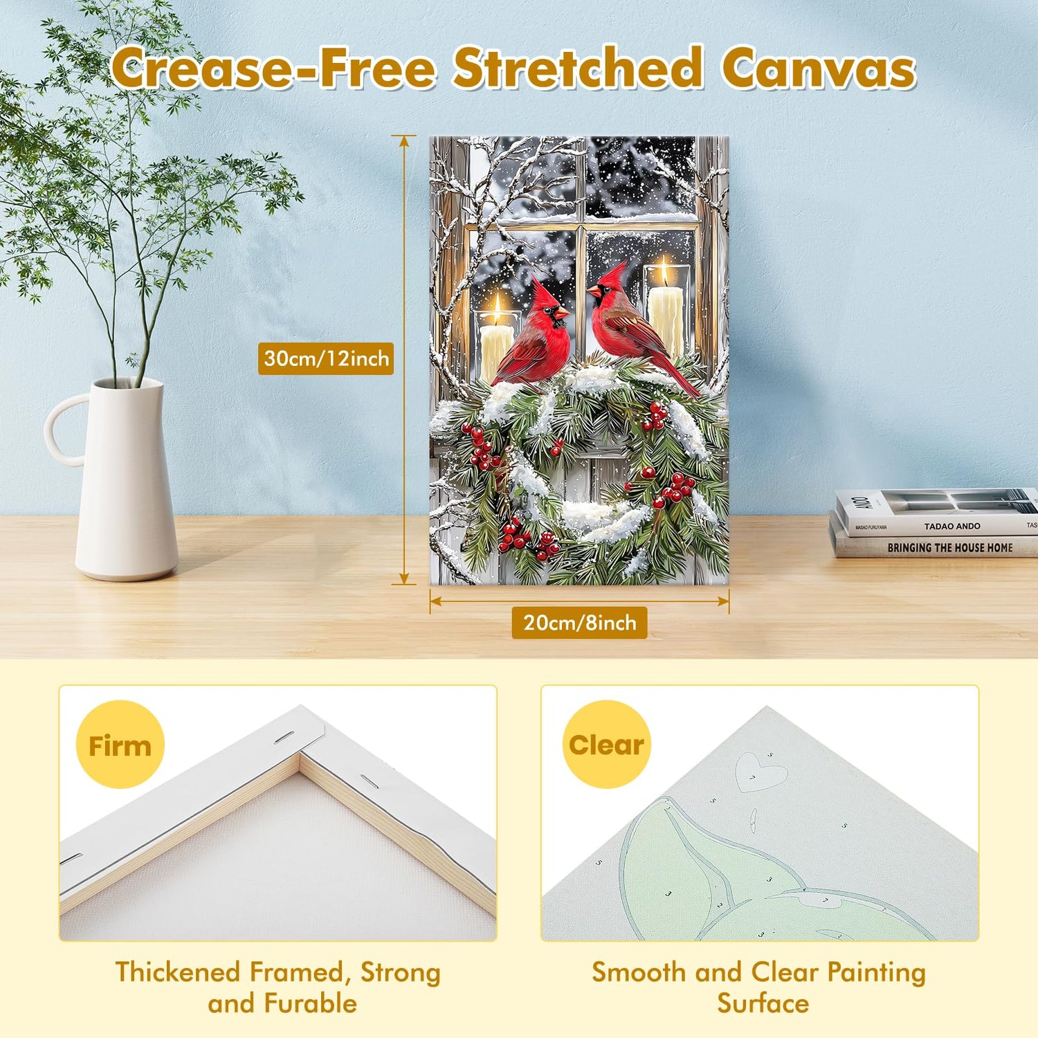 Bowetile Cardinal Paint by Numbers for Adults Beginners Framed, Adults' Paint-by-Number Christmas Kits, Adult Paint by Number Winter Kits on Canvas, Acrylic Number Painting for Home Decor, 8x12in